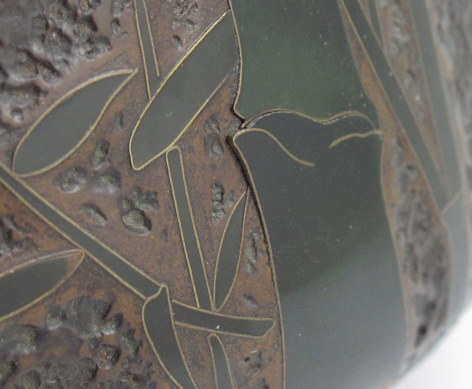 TALL JAPANESE TOTAI CLOISONNE VASE: ''Tree Bark'' cloisonne on porcelain, 14'' tall.