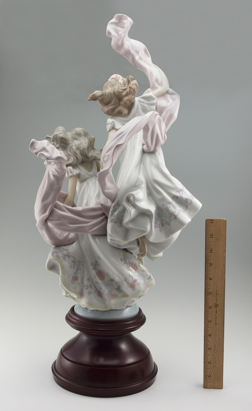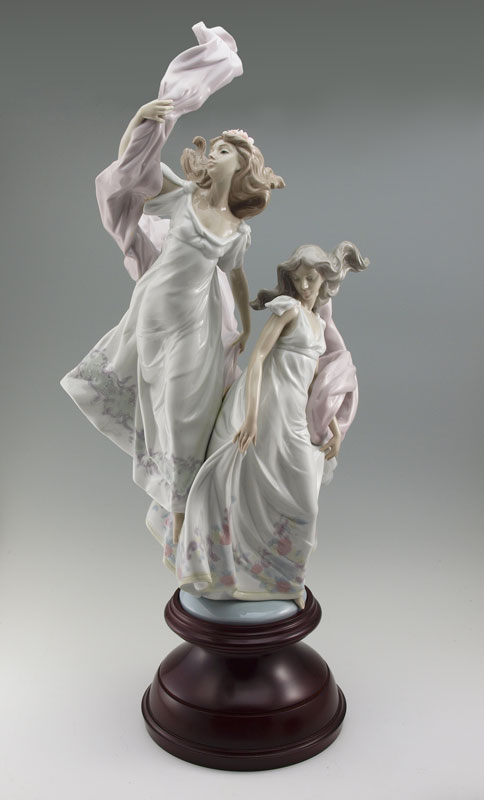 LLADRO PORCELAIN FIGURINE ALLEGORY OF LIBERTY: #5819, Jose Puche designer, glazed, issued 1991, 26''h with wooden base, approx. 12'' x 12''. With original box.