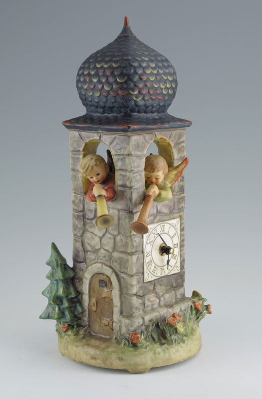 HUMMEL PORCELAIN FIGURINE: CALL TO WORSHIP #441-300, Century Collection, clock tower with functioning clock that chimes on the hour, issued 1988, 13 1/4'', with original box.