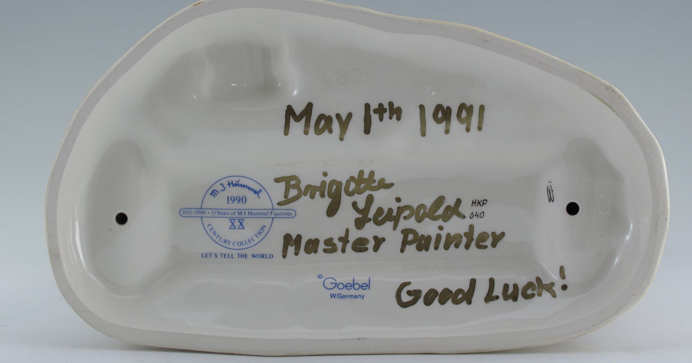 HUMMEL PORCELAIN FIGURINE: LET'S TELL THE WORLD #487-254, Century Collection, issued 1990, 10 1/2'', with original box.