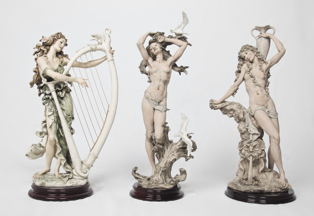 3 GIUSEPPE ARMANI LIMITED EDITION FIGURINES: To include, ANGELICA 484 C, 111/5000; SEA WAVE 1006 T, 506/1500; SPRING WATER 1007 T, 506/1500. ''Florence sculture d'arte'' Made in Italy, with boxes and coa. Sold as a lot.