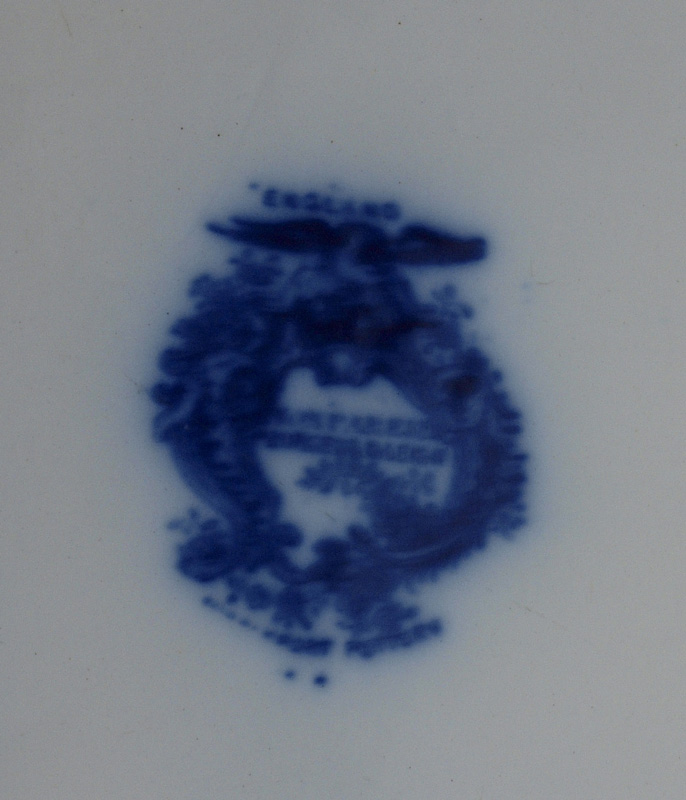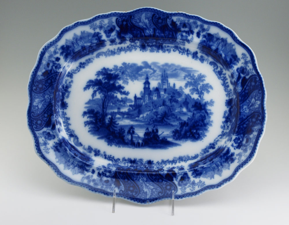 BURGESS & LEIGH ENGLISH FLOW BLUE PLATTER: ''Non Pereil'' castle scene. CA. 1889-1919. 15 1/2'' x 12 3/4''.