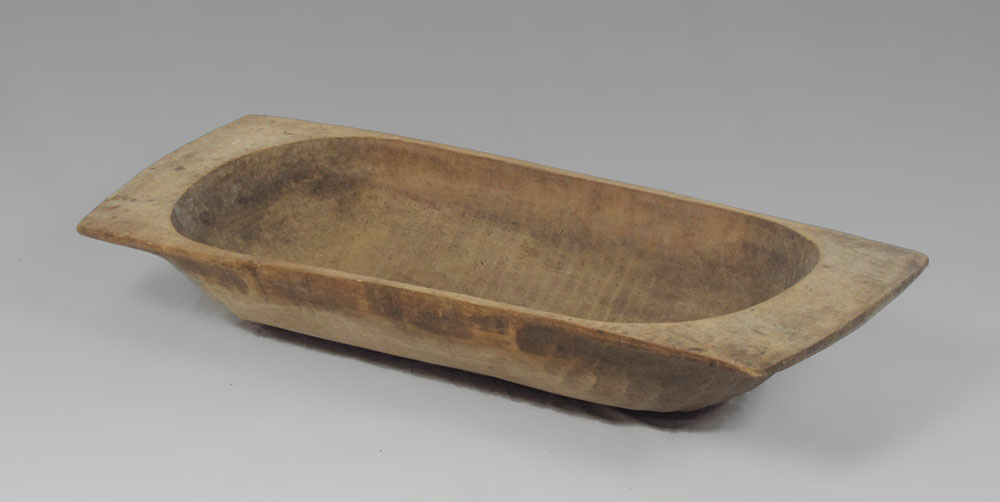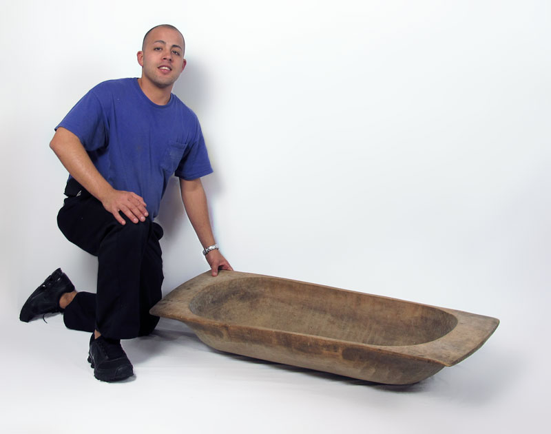 LARGE 4 FT HAND HEWN WOODEN TRENCHER: 48'' length, x 18'' x 7''h.