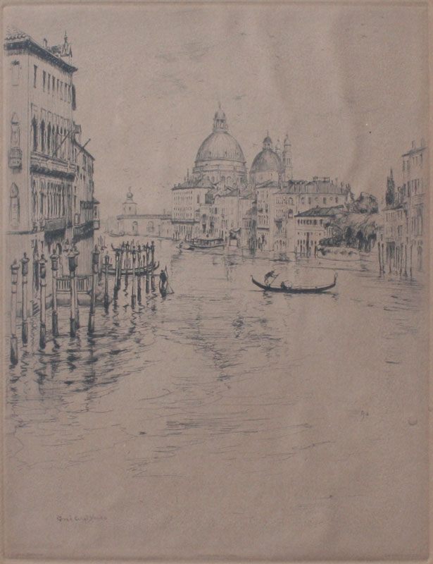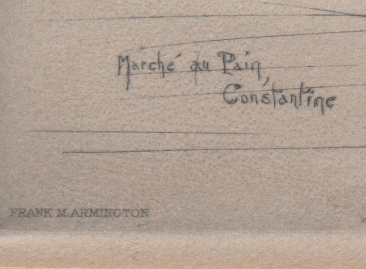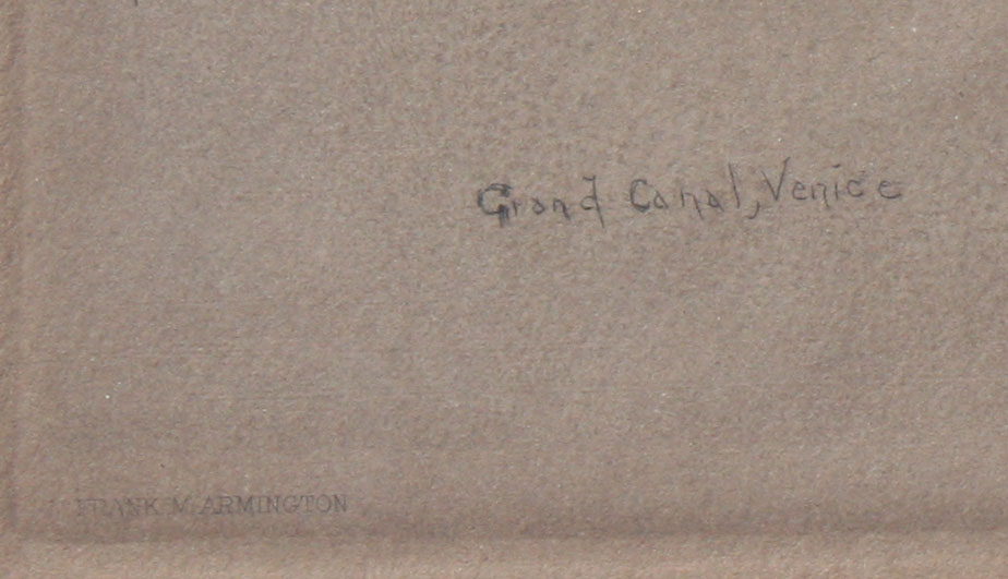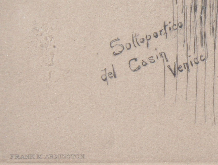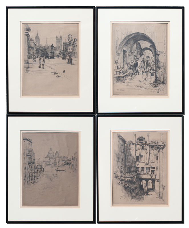 ARMINGTON, Franklin, M. (American, 1876-1941): 4 Etchings for Chalcographie du Louvre; ''Whitehall, London'', ''Marche au Pain, Constantine''; ''Grand Canal, Venice'', ''Soltoportico del Casin, Venice'', 13 1/2'' x 11'', matching frames, 21'' x 17''.