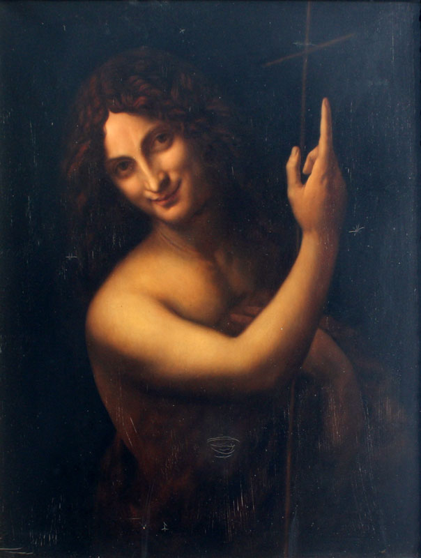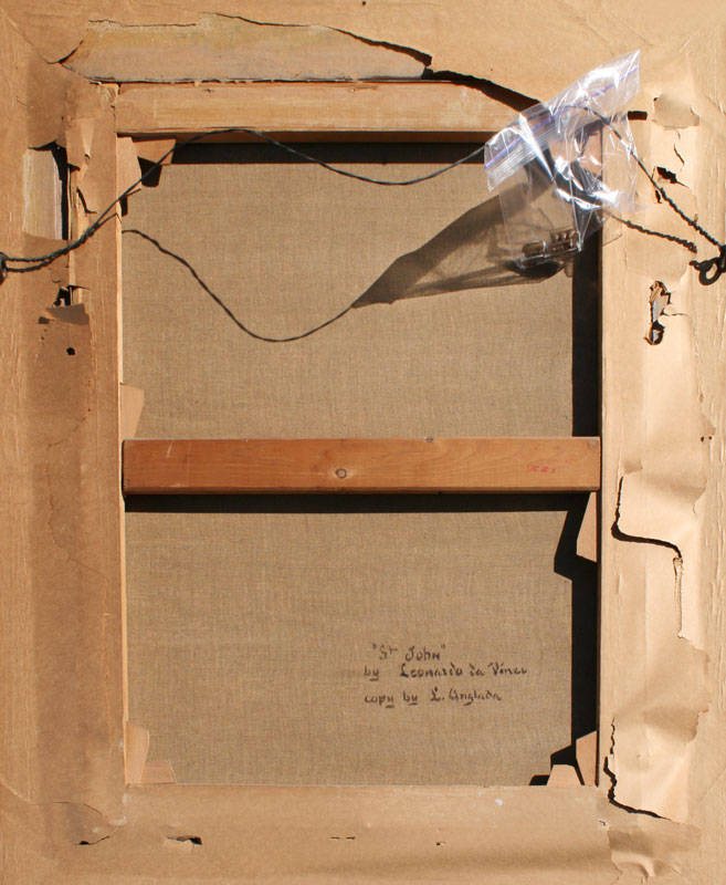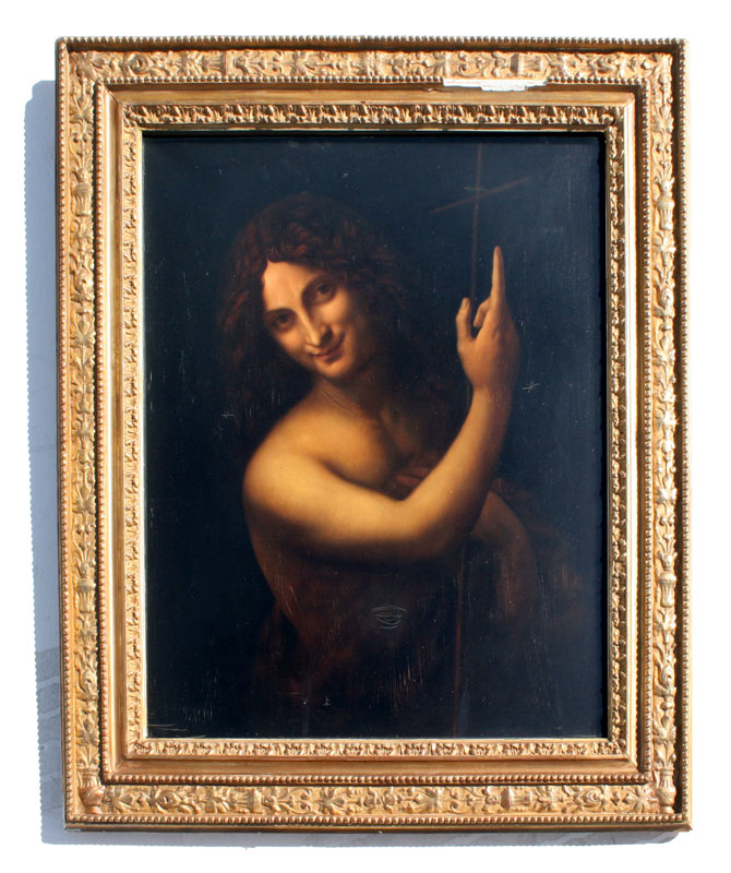 ANGLADA, L., (European, 20th C.): ''St. John'' after Da Vinci, OIL/Canvas, 25 1/2'' x 21 1/2'', fine carved and gilded gesso frame with wear and missing gesso, 33'' x 28 1/2'', artist information inscribed on canvas verso.