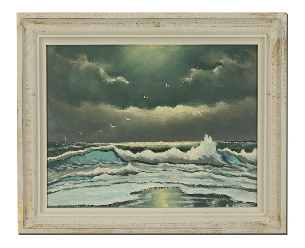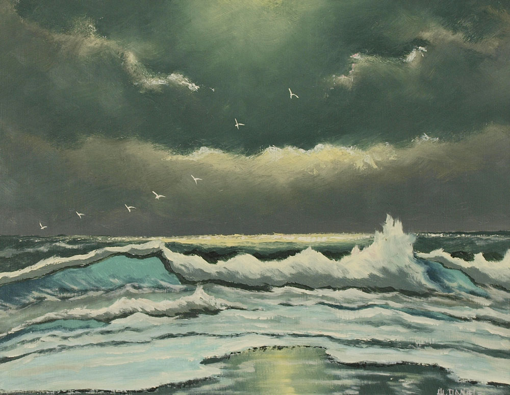 DANIELS, Willie, (American, 20th Century): Florida Highwaymen surf scene, OIL/Masonite, 18'' x 24'', framed 22'' x 28 1/4''.