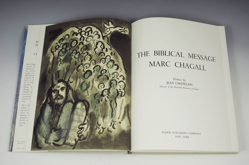 CHAGALL, Marc, (French, 1887-1985): ''The Biblical Message'' book with original Lithograph inside. Tudor Publishing Company, New York, 1972, 1973. 199 pages. 1 1/4'' x 13 1/8'' x 10''.