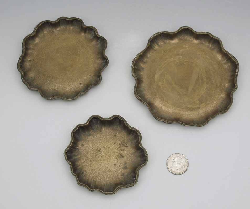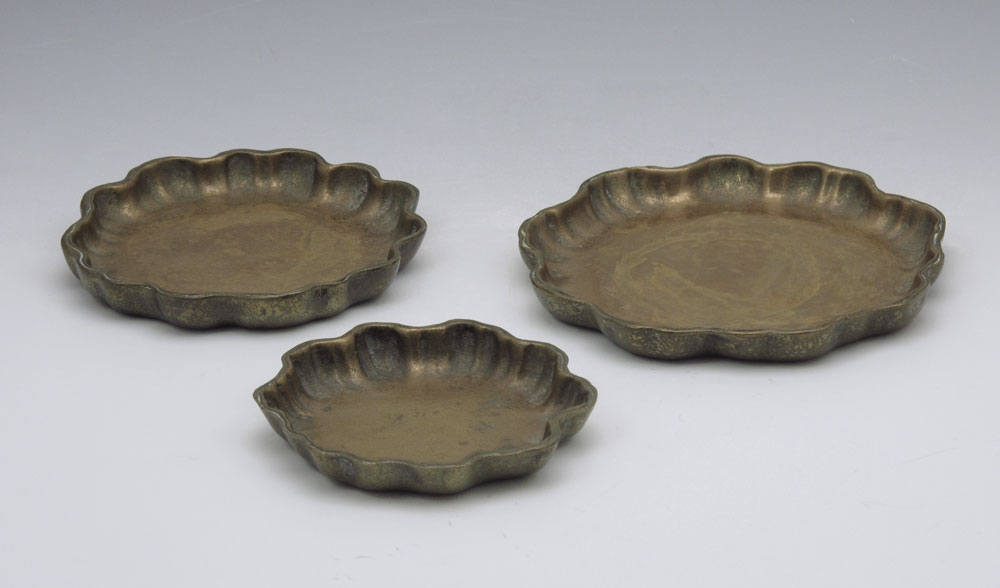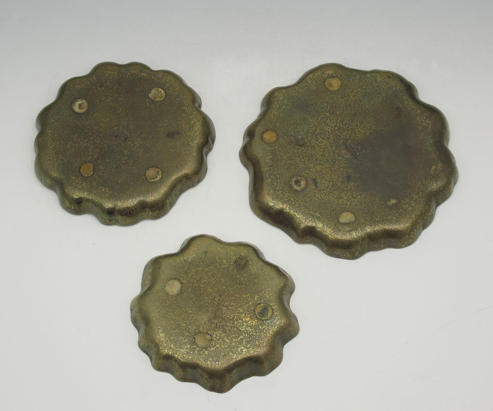 3 PIECE TIFFANY STUDIOS BRONZE TRAYS #1719: In graduated sizes from 3 1/2'' to 5''. Marked Tiffany Studios New York 1719.
