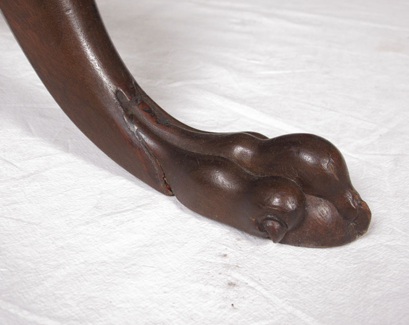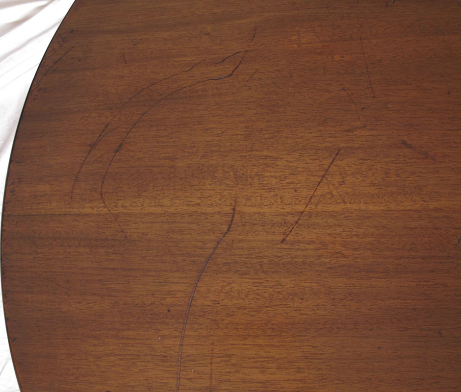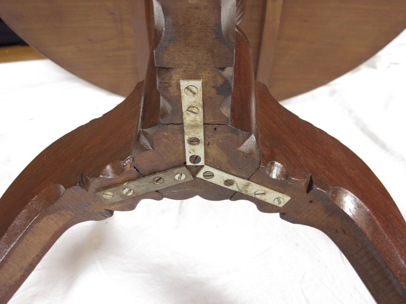 CONDITION: Old scratches to top, gnaw mark to one foot, old repair to another, metal supports to underside of pedestal, newer repair to pivot side of candle stand top of base.