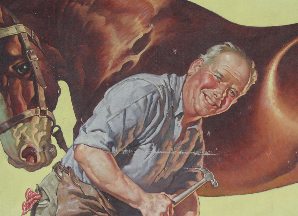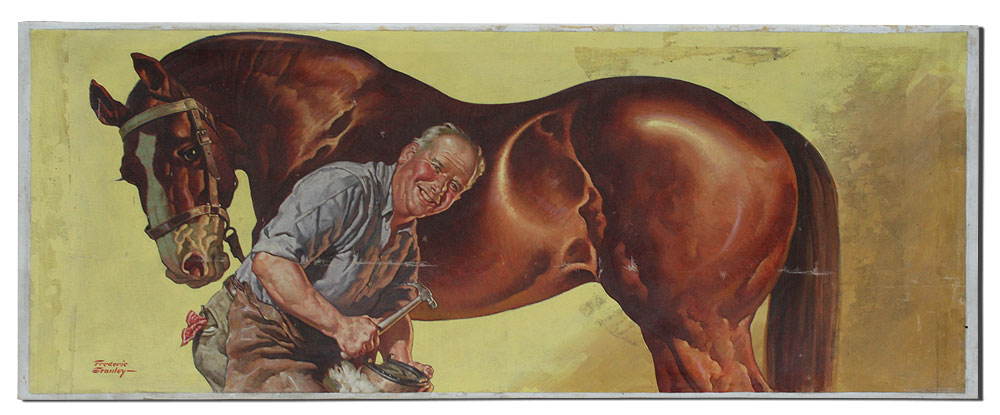 STANLEY, Frederic, (American, 1892-1967): Illustration Of A Man Shoeing A Horse, Oil/Canvas, 11'' x 28'', signed, unframed.
