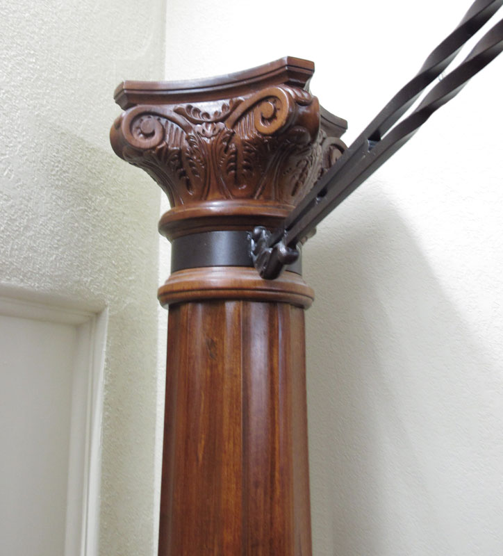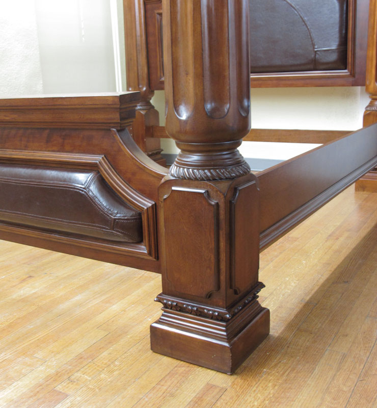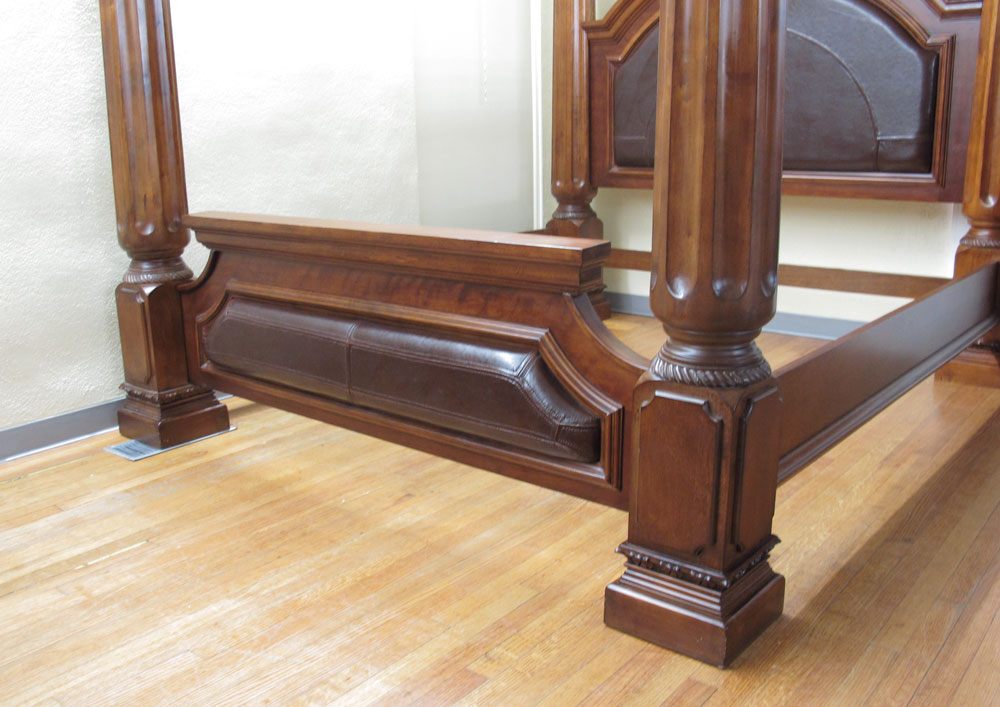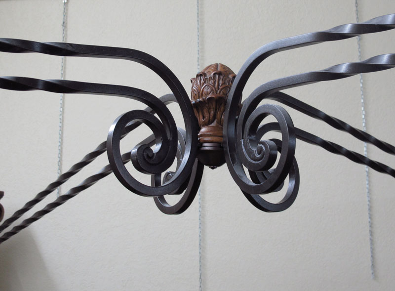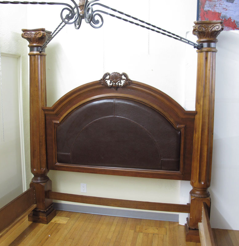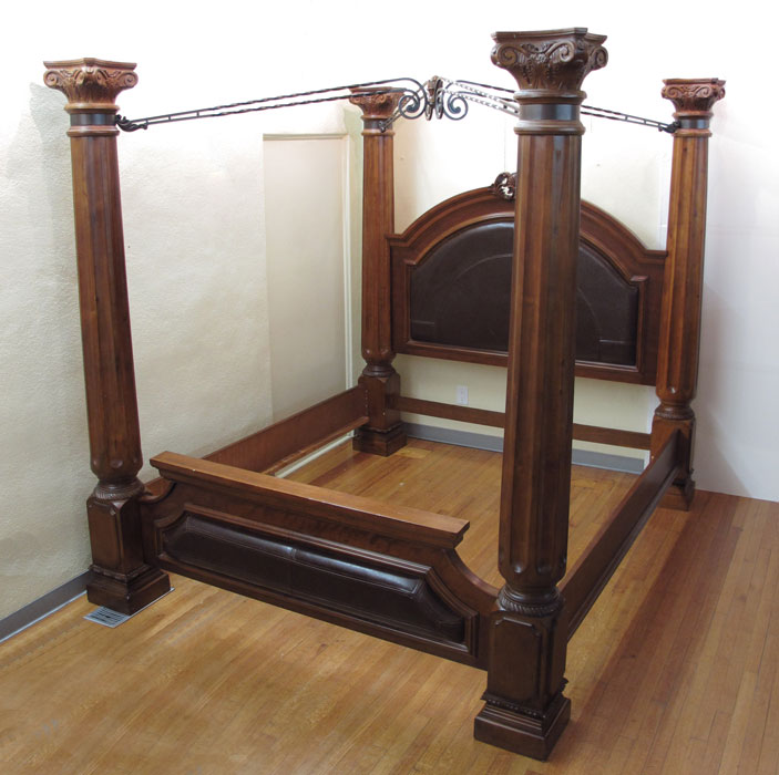 MODERN IRON MOUNTED FOUR POSTER BED: King size: Headboard 46'' h. x Footboard 21 3/4'' h. x Top To Bottom 91 1/2'' h. x 84 3/4'' w. 100 1/2'' d.