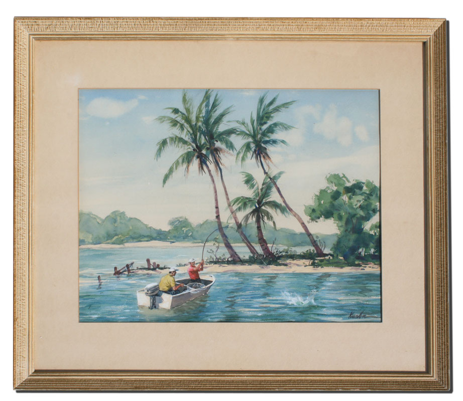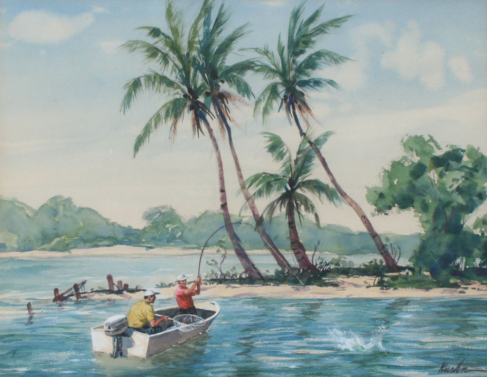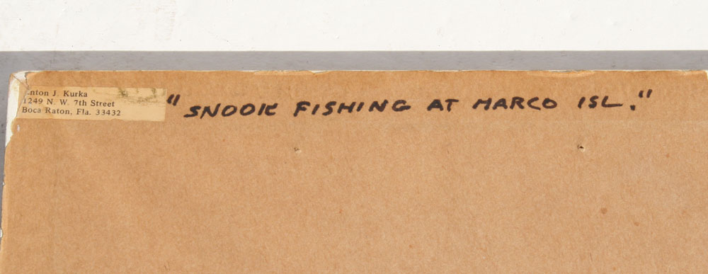 KURKA, Anton, (American, 20th C): ''Snook Fishing At Marco Island'', Watercolor, sight size 12'' x 16 1/2'', signed, original frame, 19 1/2'' x 23 1/2, titled verso.
