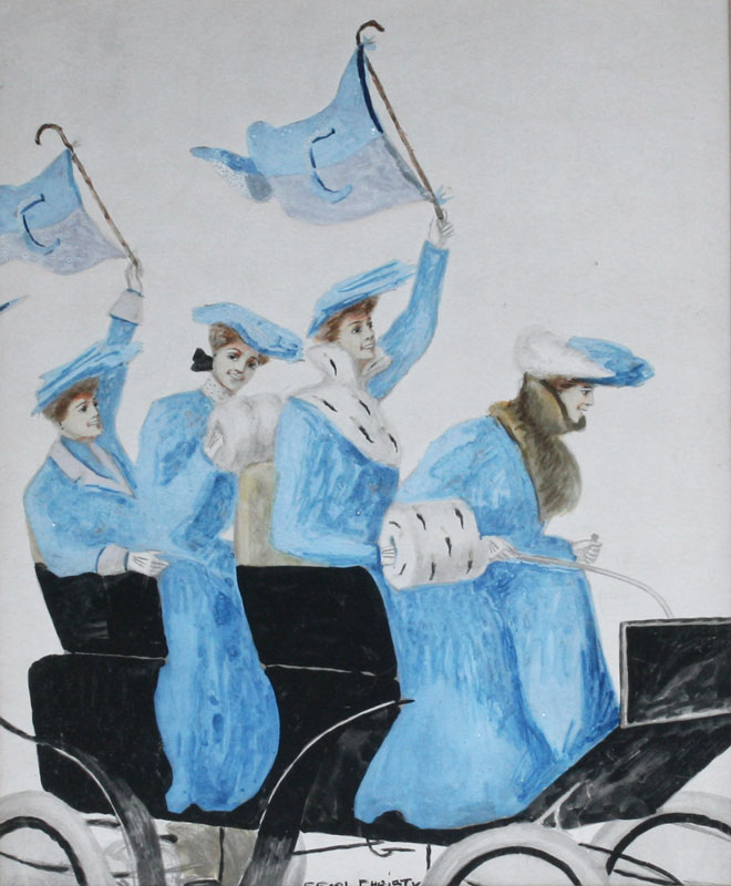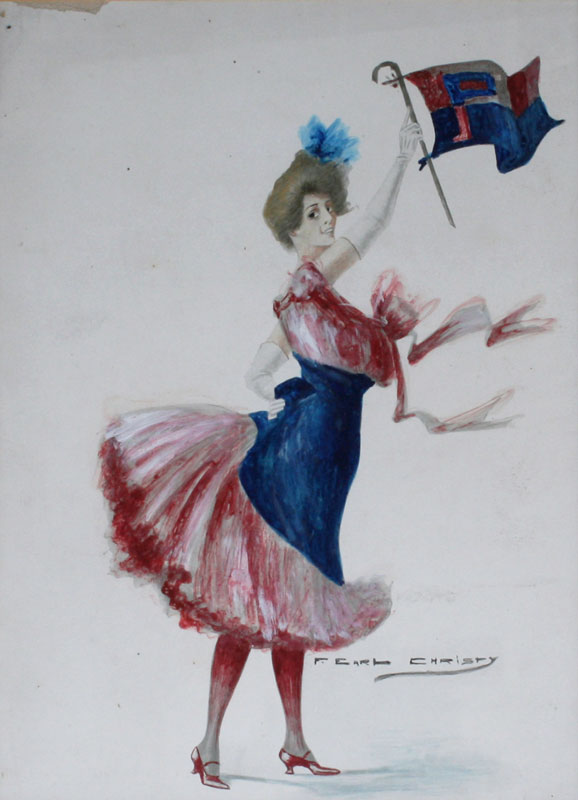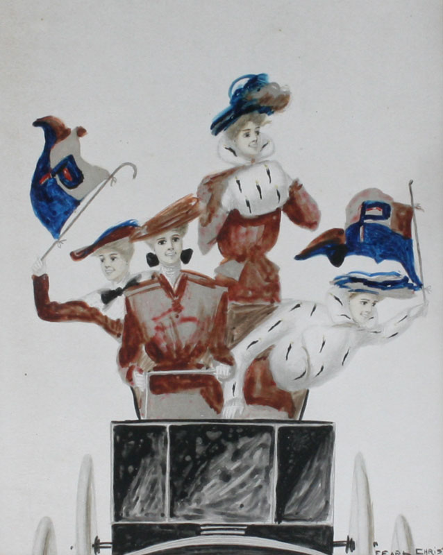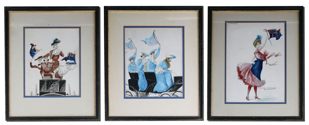 CHRISTY, F. E, (American, 1882 - 1961): 3 Illustrations of Collegiate Cheerleaders, Watercolor and Gouache, sight size 9 3/4'' x 8'', all signed, matching frames, 16'' x 14''.
