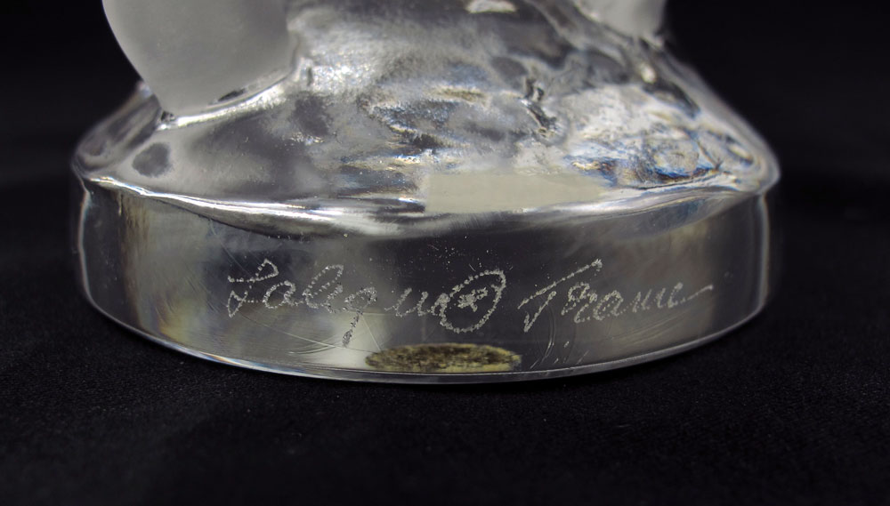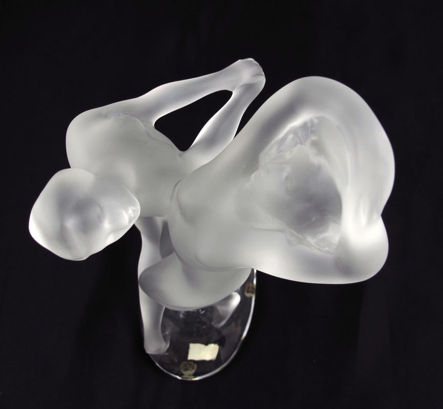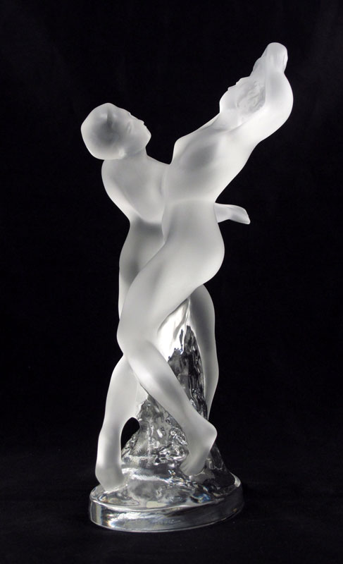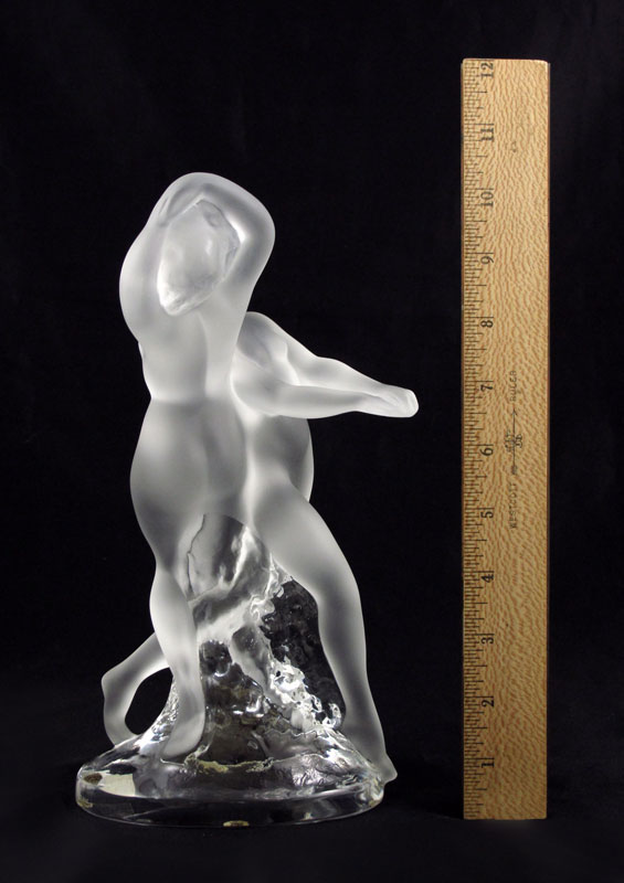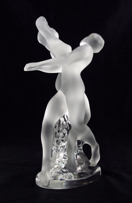LALIQUE NUDES DANCING: Frosted French crystal, 10 11/8'' tall. Signed with Lalique copyright mark.