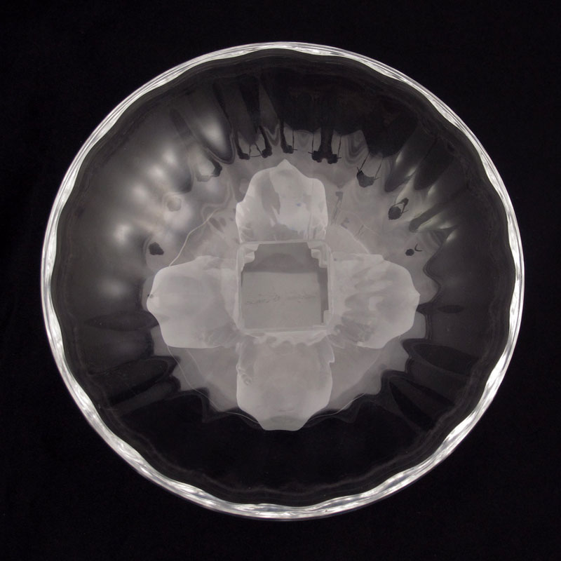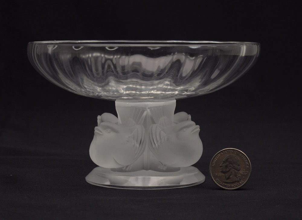 LALIQUE ''NOGENT'' FRENCH CRYSTAL PEDESTAL BOWL: Four birds supporting the bowl. Signed in script, Lalique France. 3 1/2''h. x 5 1/2'' dia.