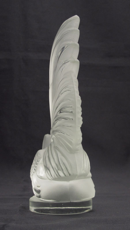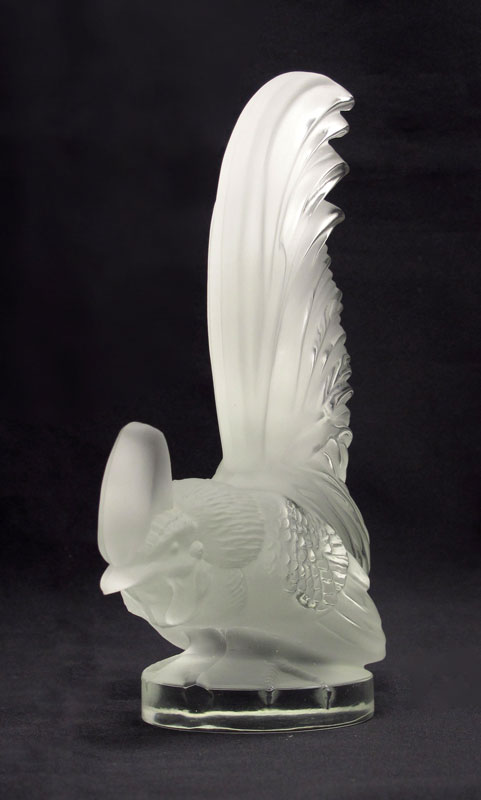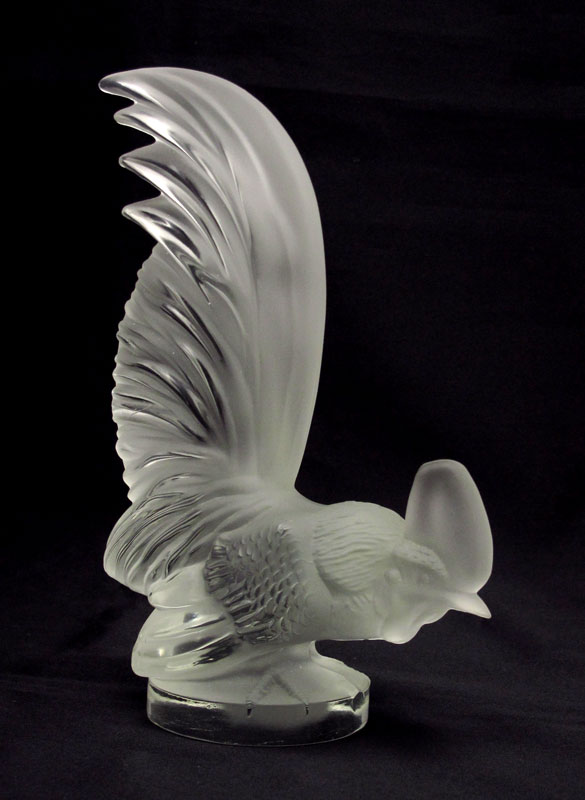 LALIQUE ROOSTER: Frosted and clear glass, 8'' high.