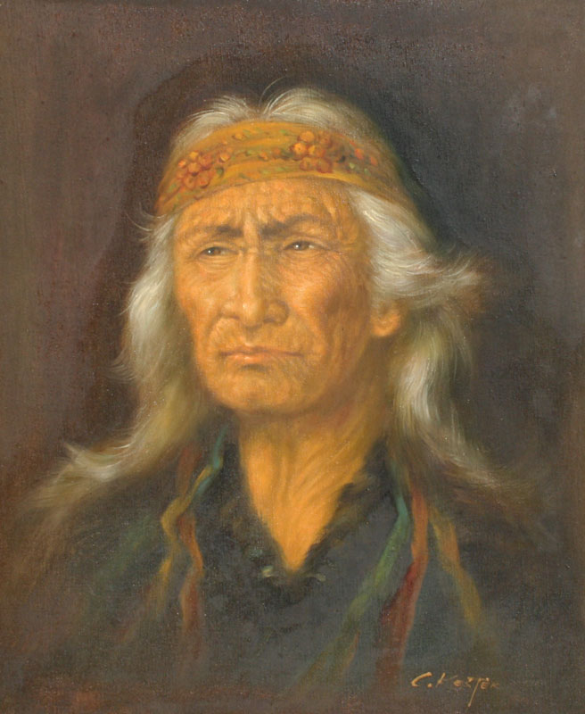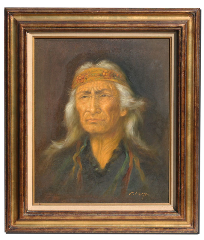ELDERLY INDIAN MAN PORTRAIT SIGNED KESTER: Possibly Leonard, Oil/Canvas, 24'' x 20'', framed, 32 1/2'' x 28 1/2''.