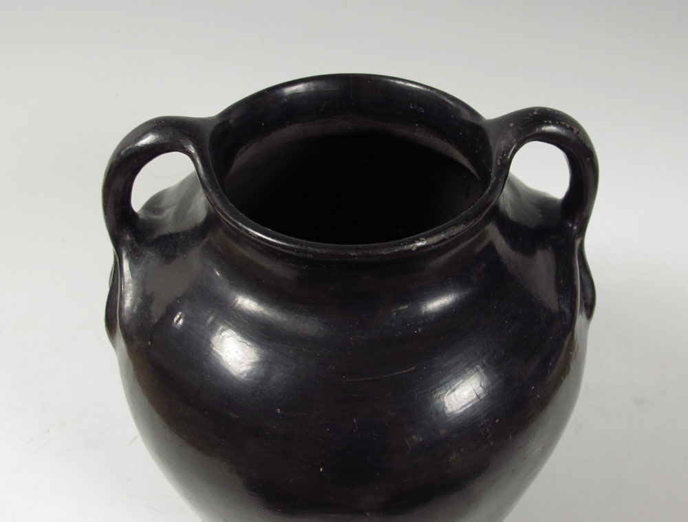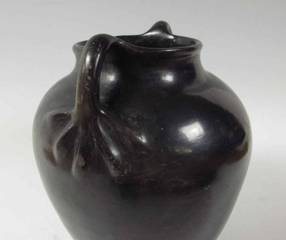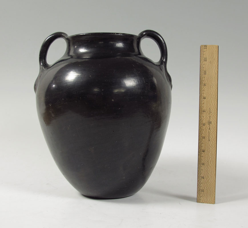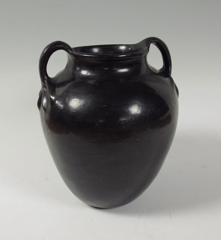 LARGE SANTA CLARA HANDLED WATER VESSEL: No carved design, handles attached to body with paw form. Unsigned. 13 3/4'' h. x 11''.