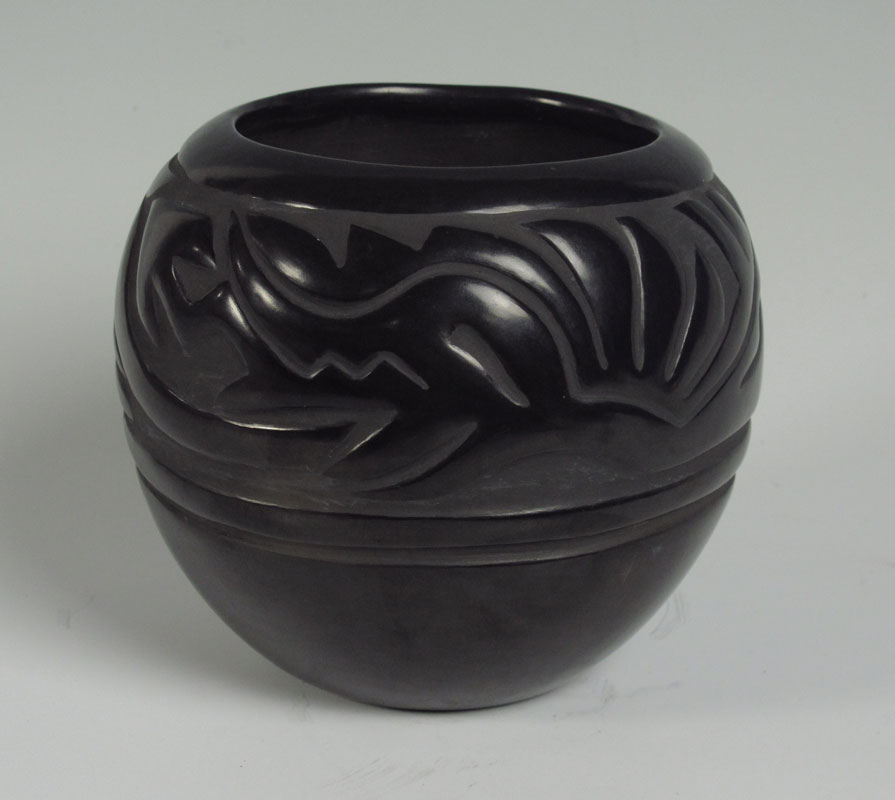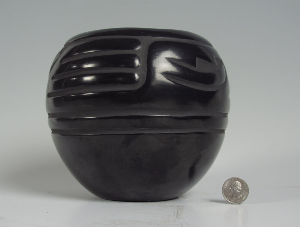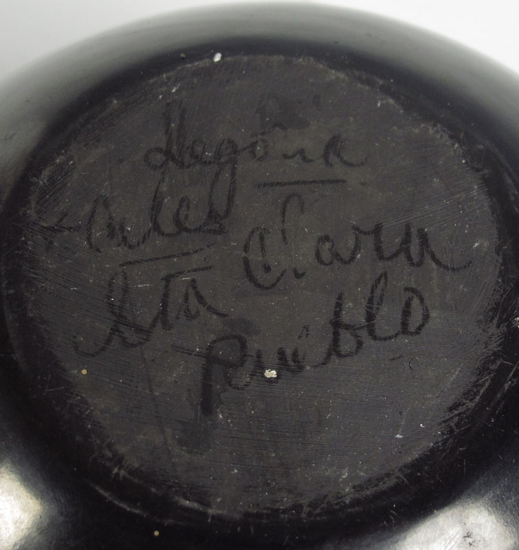 LEGORIA & CELES SANTA CLARA PUEBLO POTTERY BOWL: Carved abstract patterns, signed on base Legoria & Celes Santa Clara Pueblo. 6 1/4'' x 6 3/4'' dia.