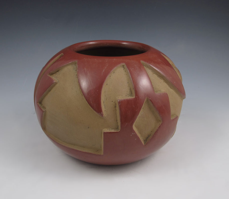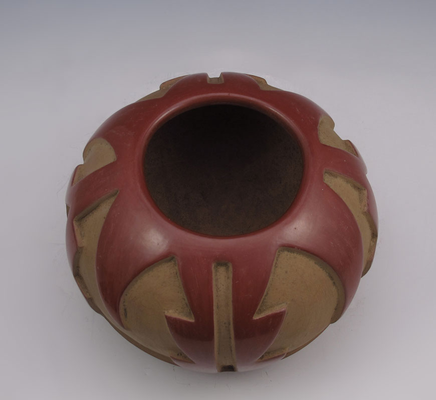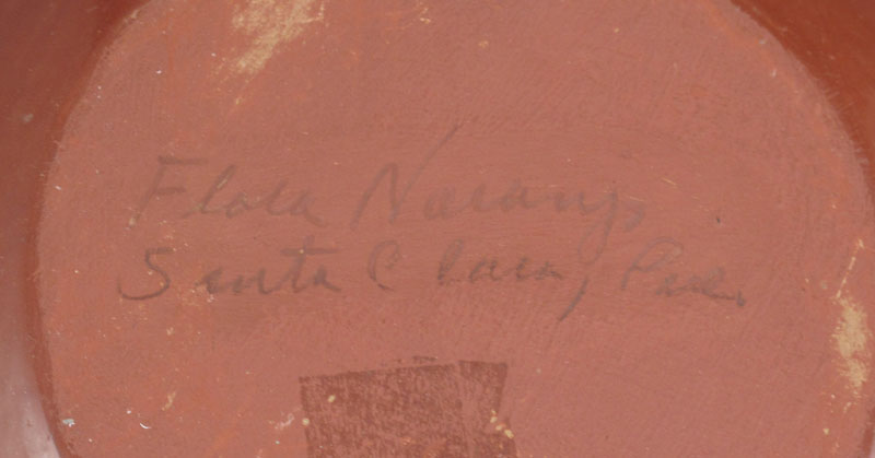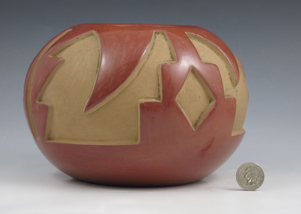 FLORA NARANJO SANTA CLARA POTTERY: Carved design, 5 1/2'' tall, 8'' dia.