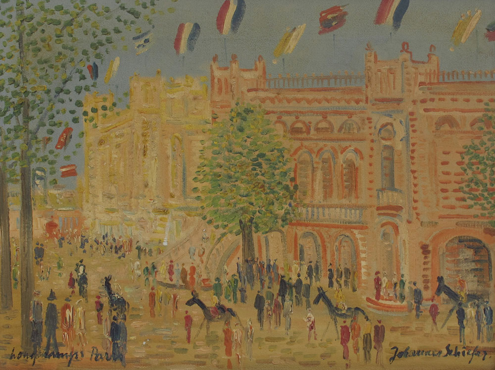 SCHIEFER, Johannes, (Dutch, 1896-1979): ''Longchamps, Paris'', OIL/Canvas, 12'' x 16'', signed, titled, period frame, 15'' x 19''.