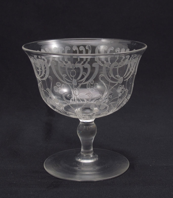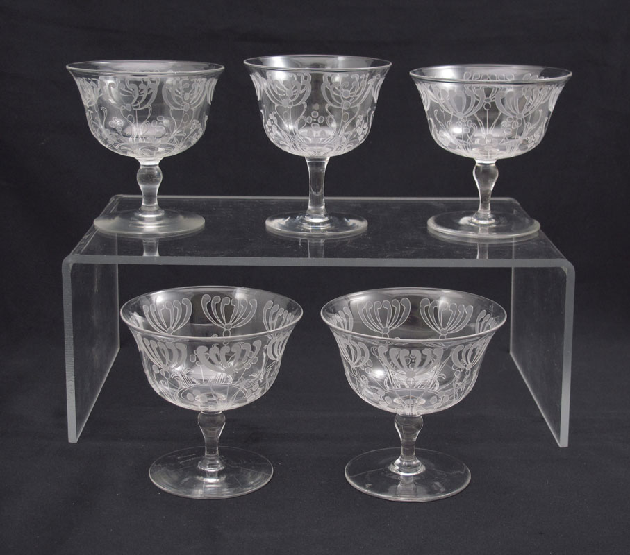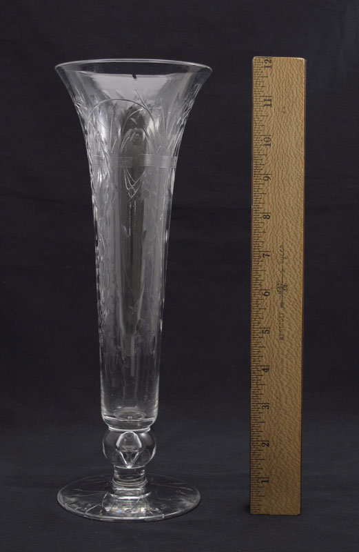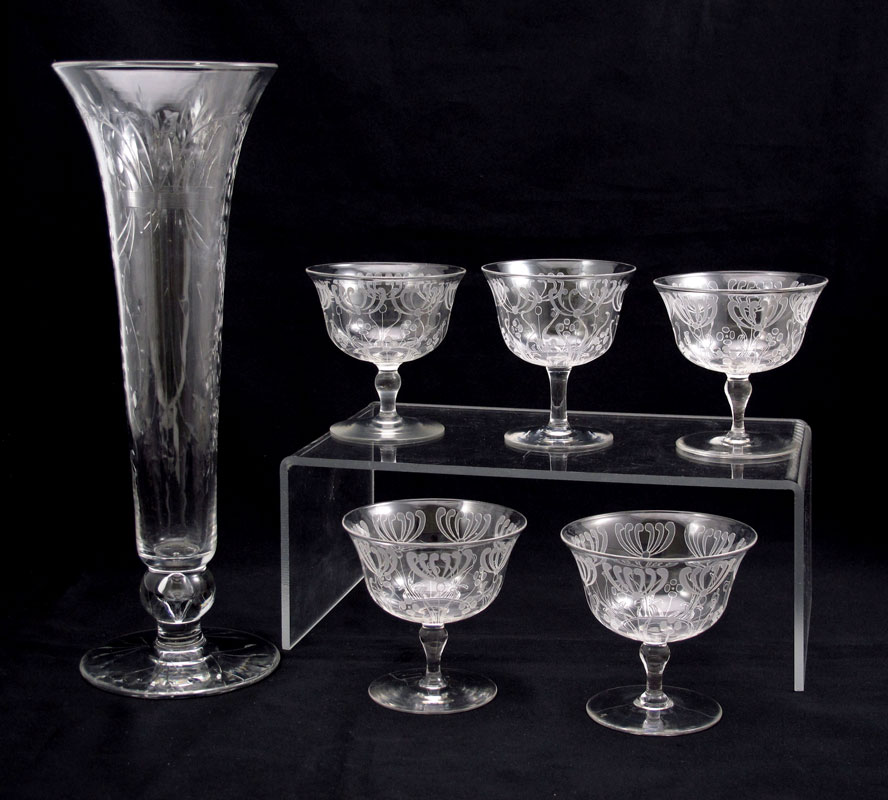 SIGNED LIBBY CUT GLASS VASE AND 5 LOCKE SHERBERTS: Vase 32'' signed Libby, Sherberts 3 1/2'' Locke Heart unsigned.