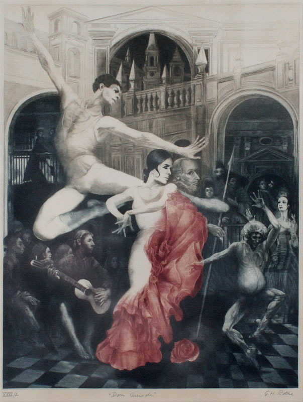 ROTHE, Gatja H., (German, 1935-): ''Don Quixote'', Etching, sight size 33'' x 26 1/2'', pencil signed, title and numbered 27/50, custom framing with wear, 48'' x 42''.
