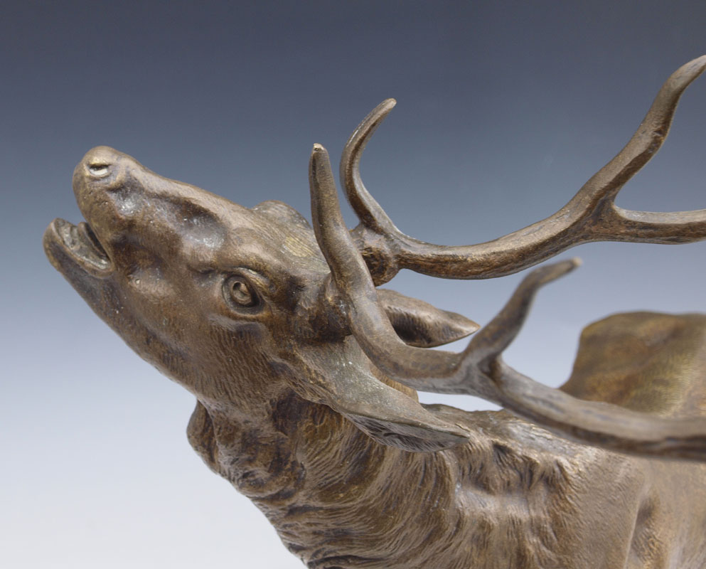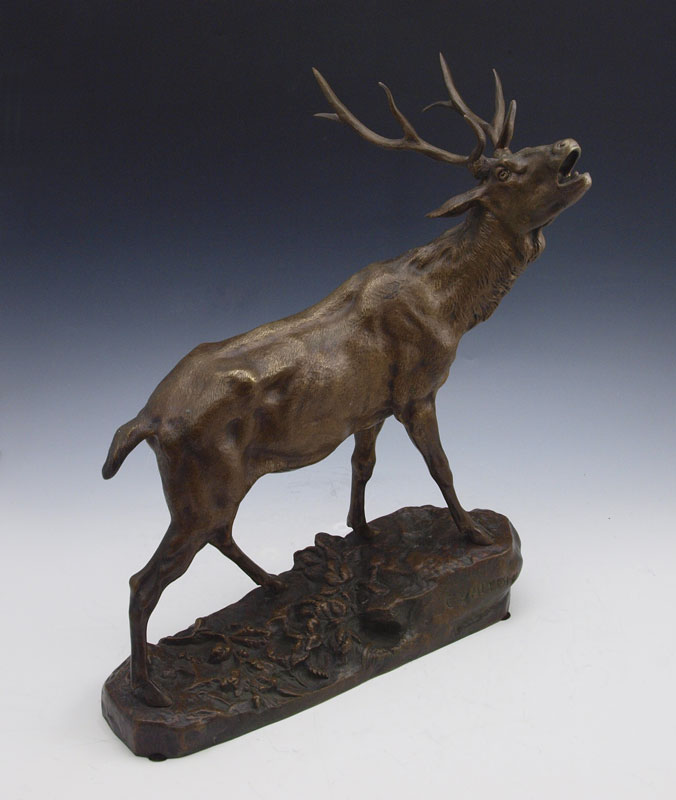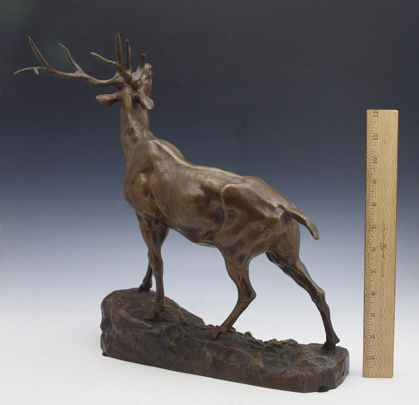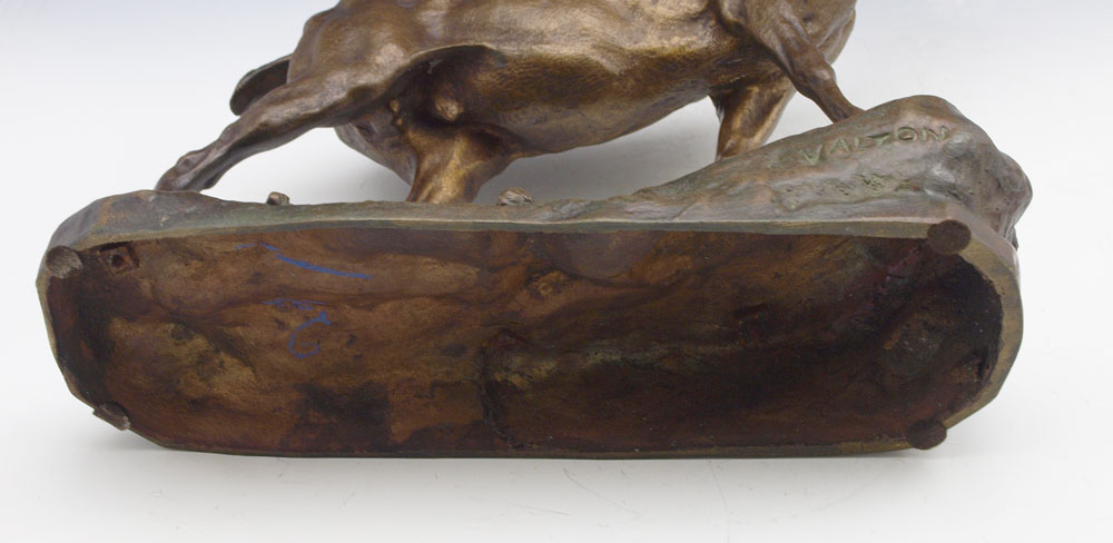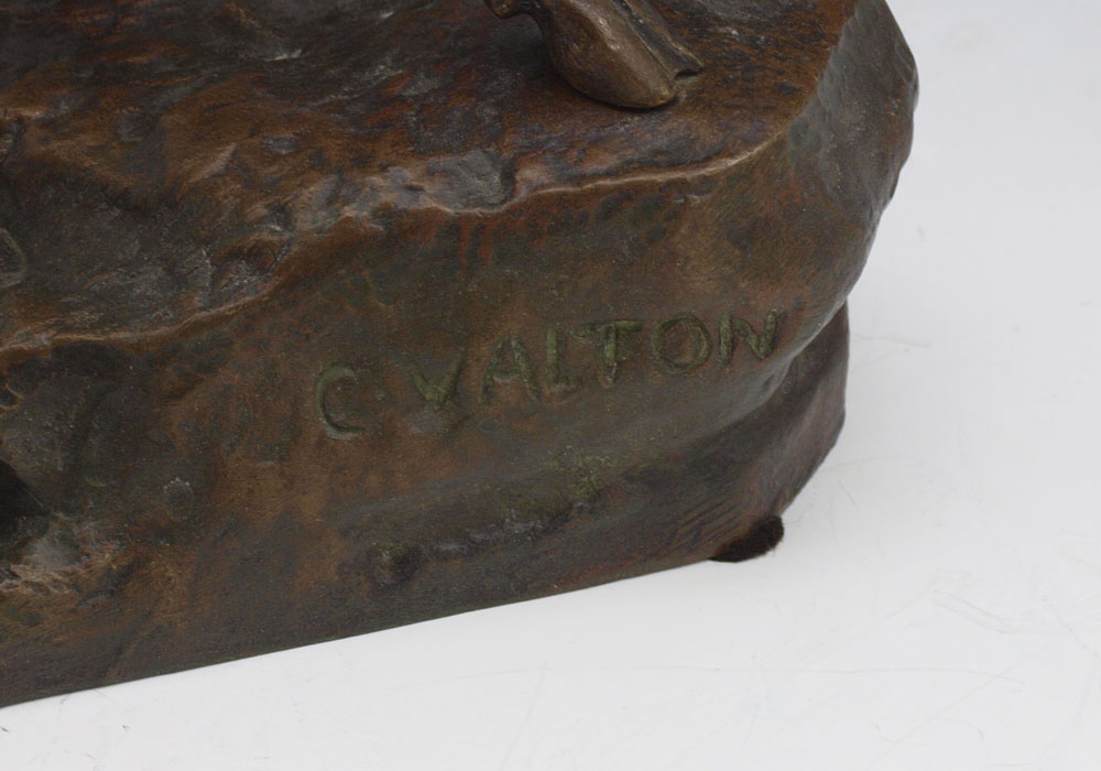 VALTON, Charles, (French, 1851-1918): Le Cerf Bramant, Stag, Bronze, 15''h x 15''w, incised signature.