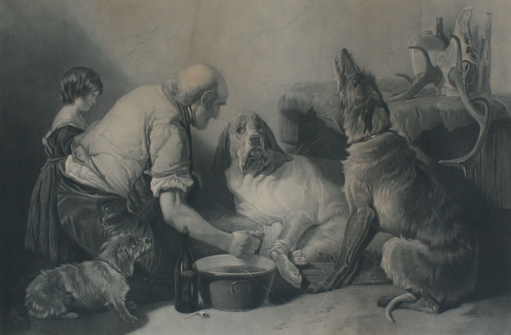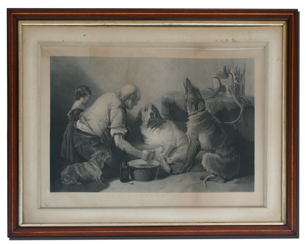 THE WOUNDED HOUND ENGRAVING BY DAVEY AFTER ANSDELL: sight size 26'' x 37'', period frame with wear, 36'' x 48''.