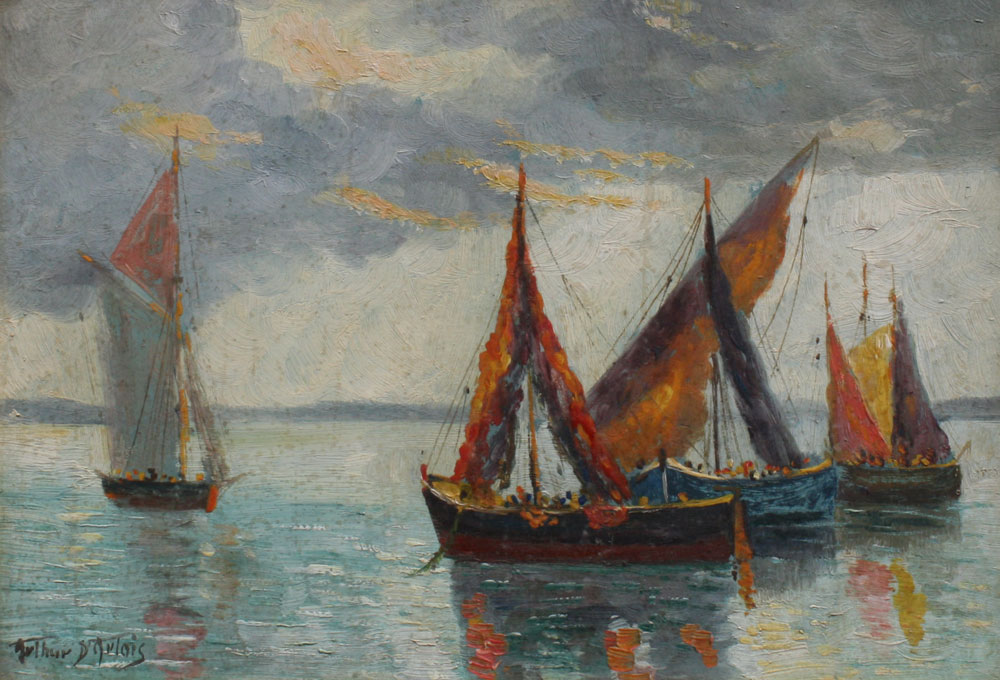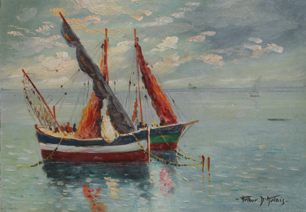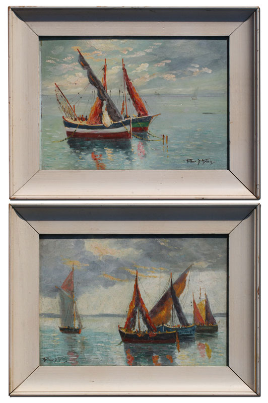 D'ARTOIS, Arthur, (American, 1894-1976): Pair of Italian Fishing Vessel Paintings, Oil/Masonite, 10'' x 14'', signed, matching painted frames with wear, 13 1/2'' x 17 3/4''.
