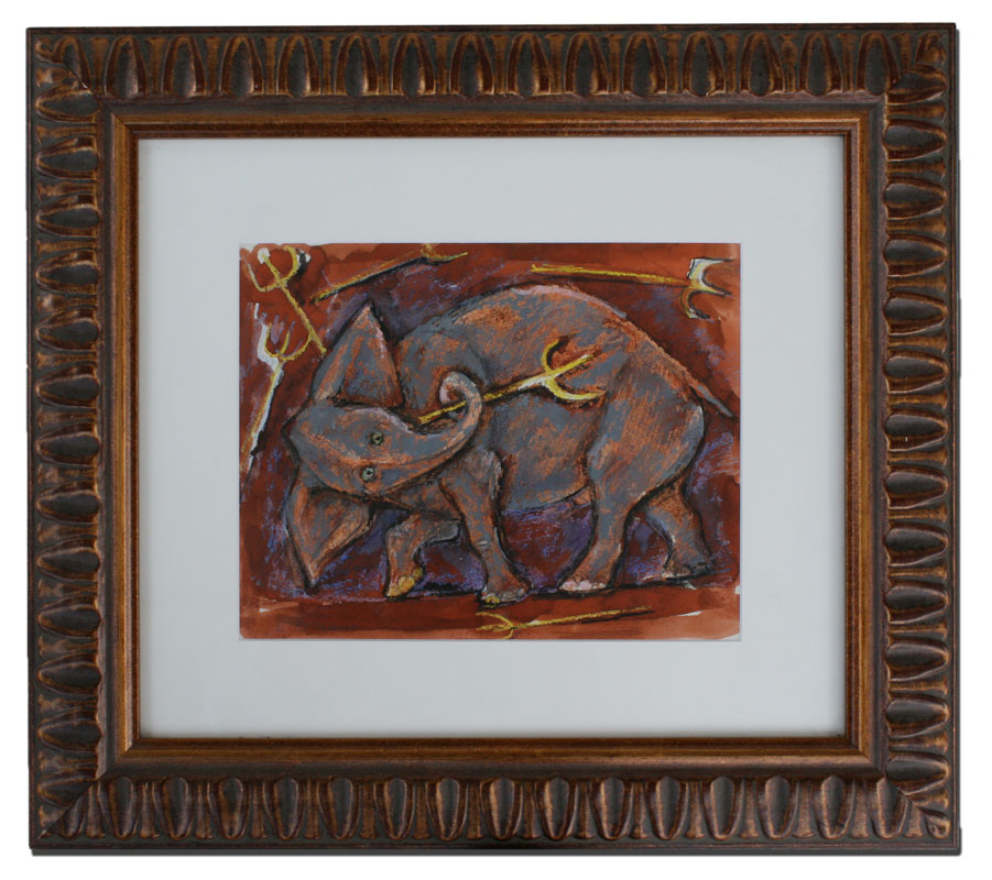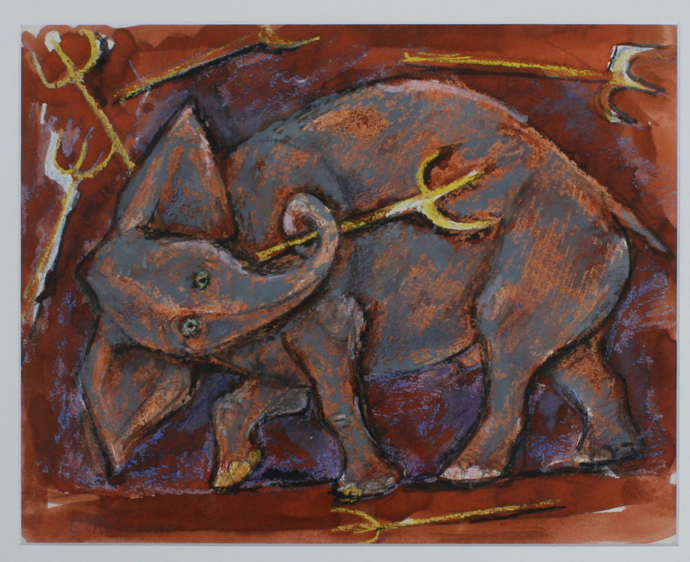 ROMANO, Emanuel, (American, 1901-): Circus Elephant and Tridents, Watercolor and Gouache, sight size 10 1/2'' x 13'', signed lower left, gilded frame, 22'' x 24 1/2''.