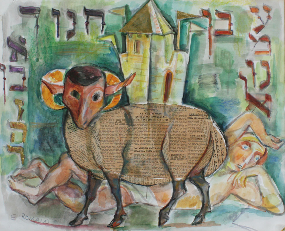 ROMANO, Emanuel, (American, 1901-): ''The Golden Citadel'', Watercolor and Gouache with Collage, sight size 22'' x 28 1/2'', signed lower left, framed, 29 1/2'' x 36''.