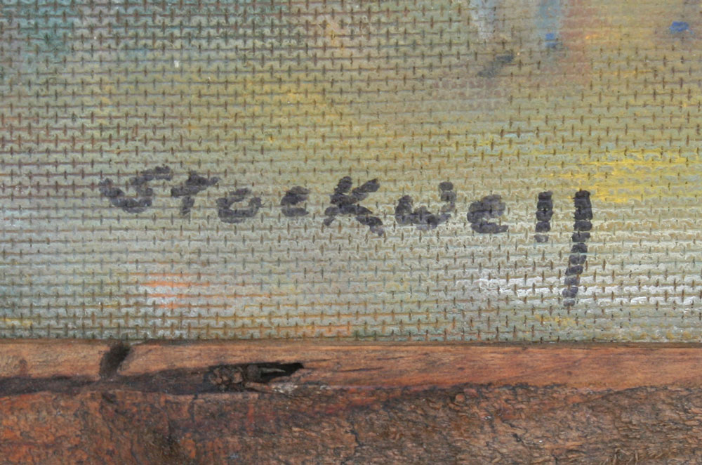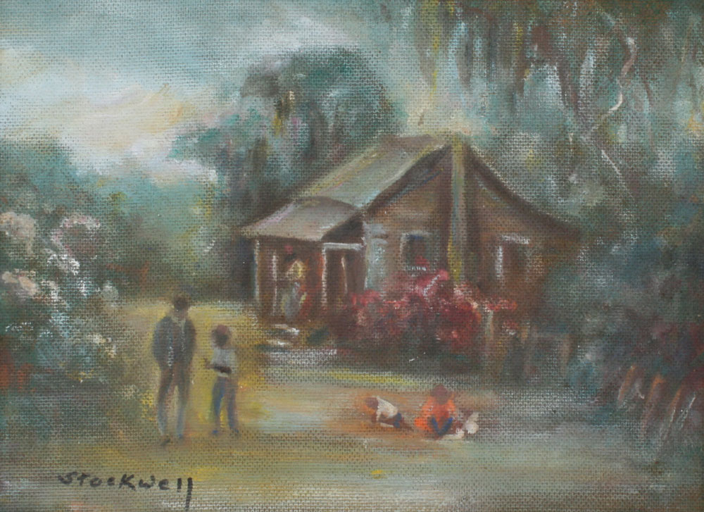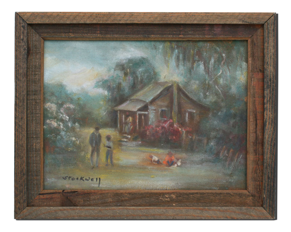 STOCKWELL, Catherine, (American, 1895-1983): Florida Cabin with Black Family, Oil/Masonite, 12'' x 16'', signed, framed, 16'' x 20''.