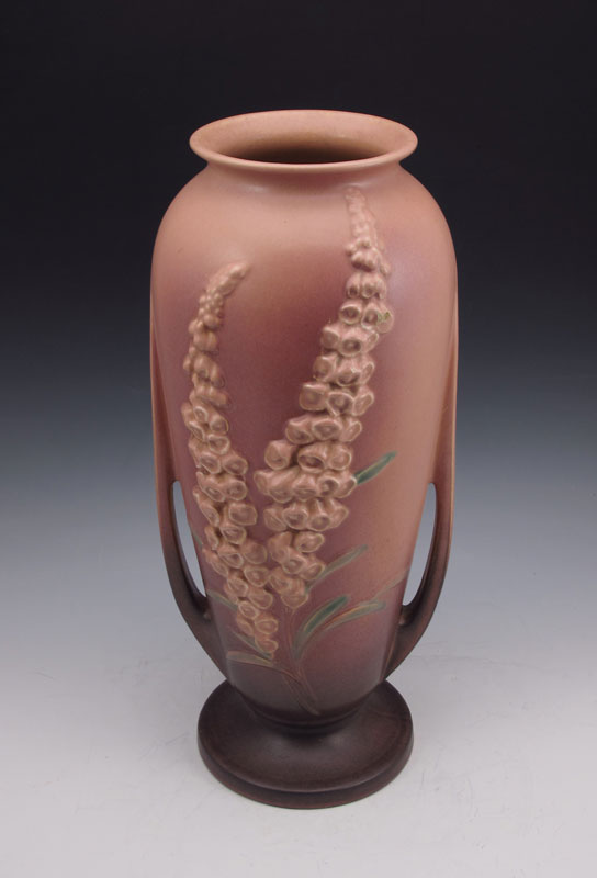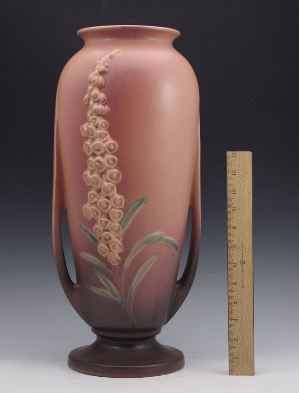 ''FOXGLOVE'' ROSEVILLE POTTERY VASE: 18'' tall.