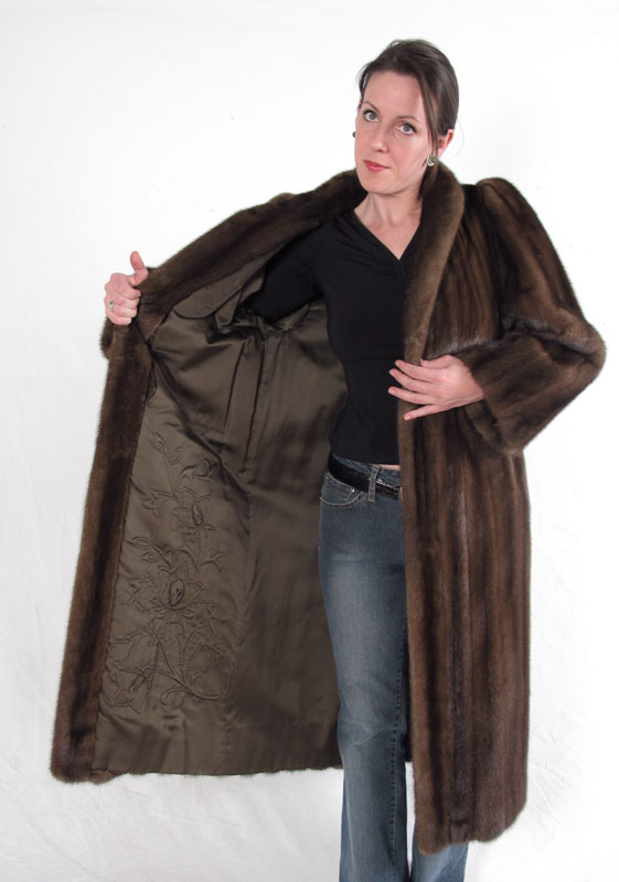 FULL LENGTH MINK COAT: Long sleeves, rich luster and color. Medium to large size. Approx. 48''l.