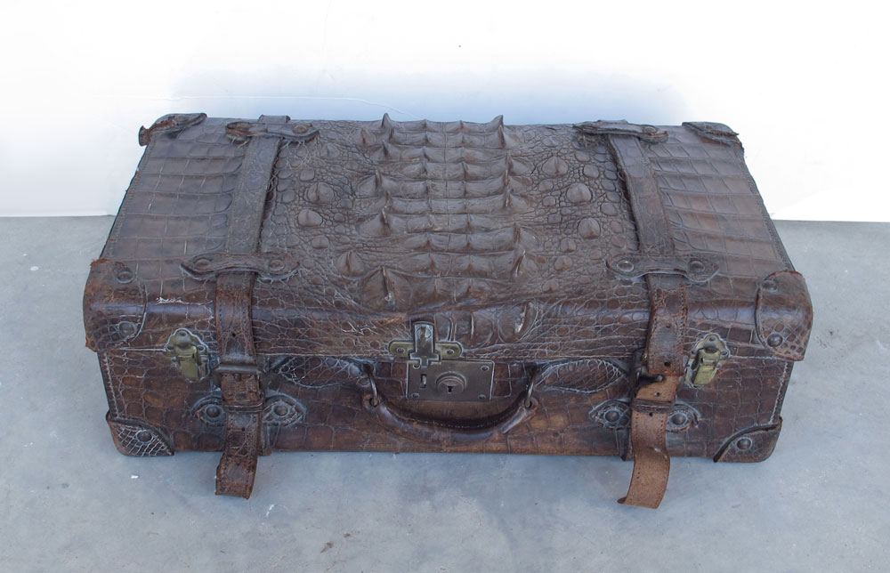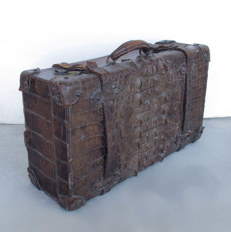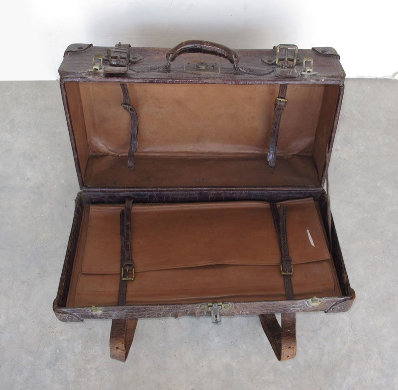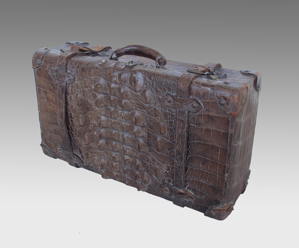 LATE 19TH CENTURY ALLIGATOR SUITCASE: Lock marked Corbin? 14 1/4'' x 24 1/4'' x 7 3/4''.