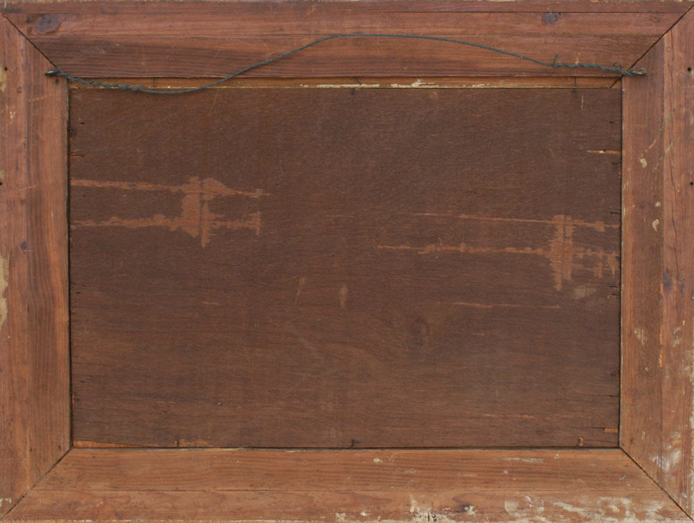 CONDITION: Cracklure throughout, cracking in board lower right, needs cleaning, sold as is.