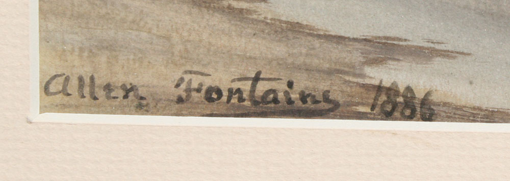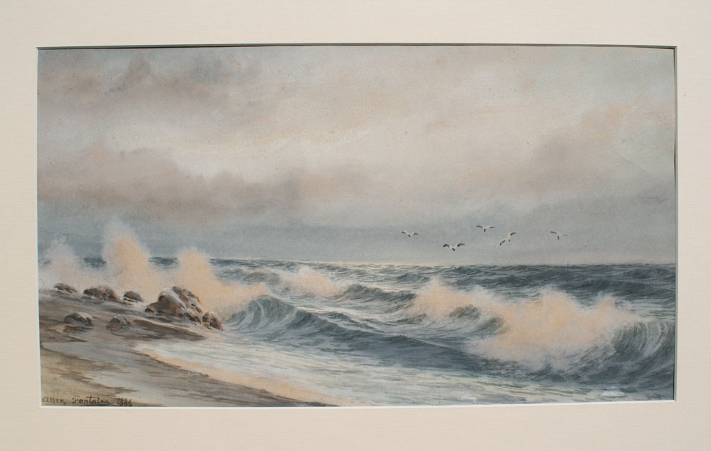 FONTAINE, Allen, (American, 1861 - 1962): Crashing Surf with Gulls, Watercolor, sight size 12'' x 21 1/4'', signed lower left, dated 1886, unframed.