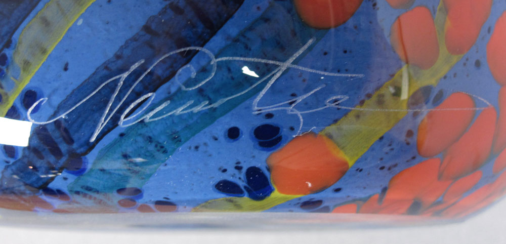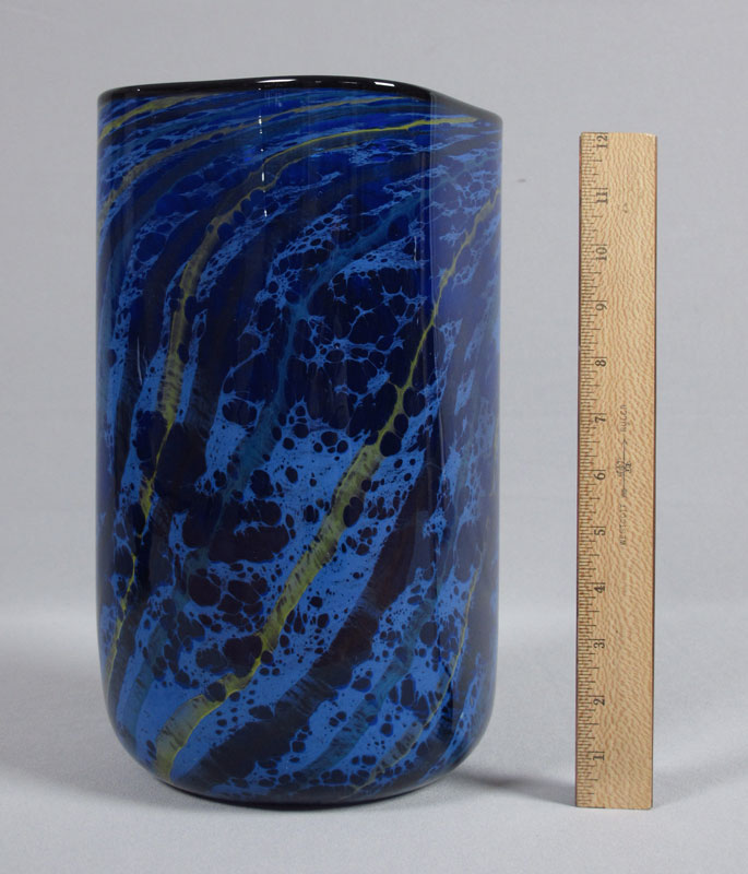 NEMTOI, Ioan (Romanian 20th C.) ART GLASS VASE: Square form ''Storm'', 19 of 30, signed, approx. 13'' x 6 3/4''.