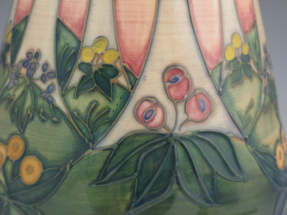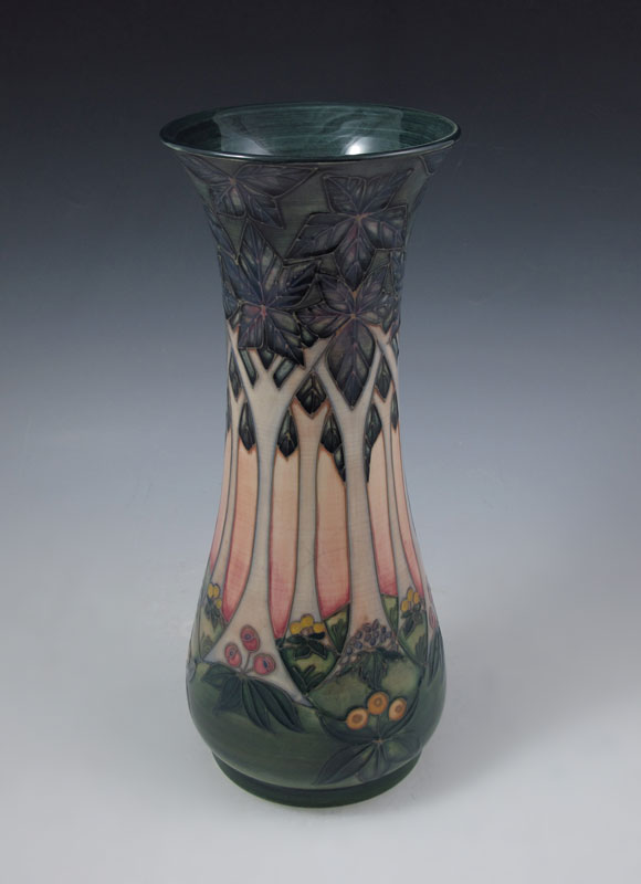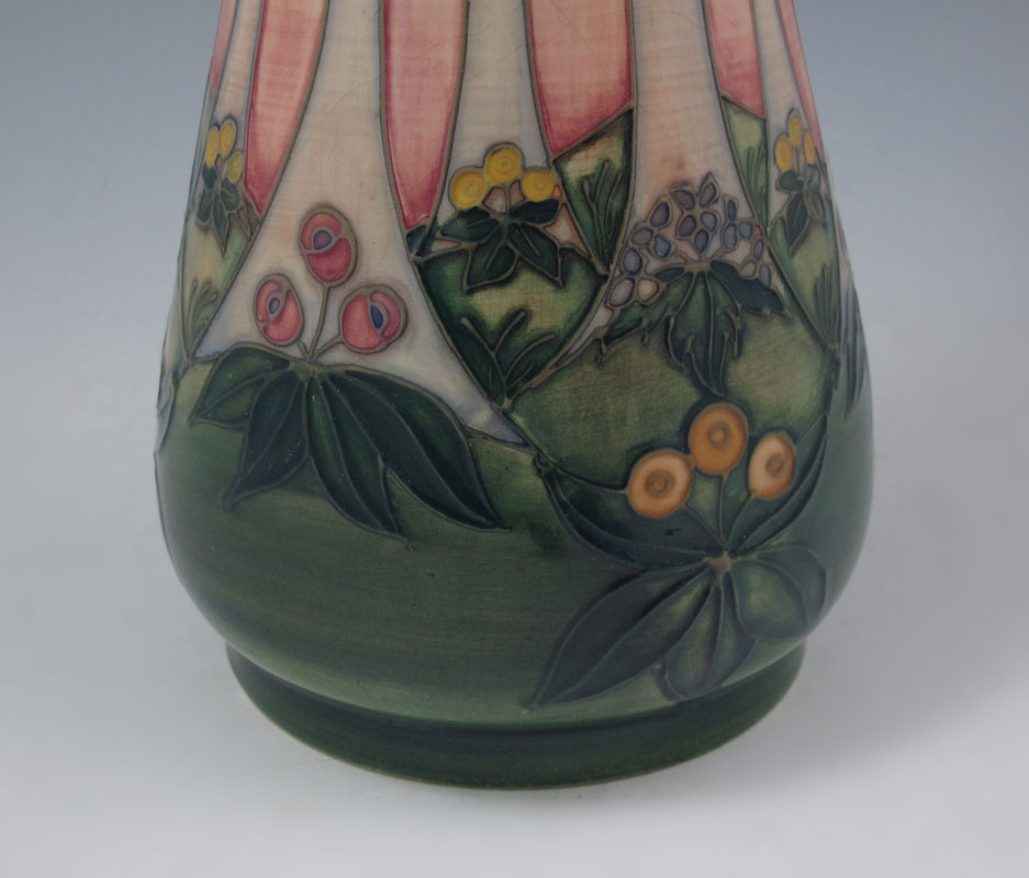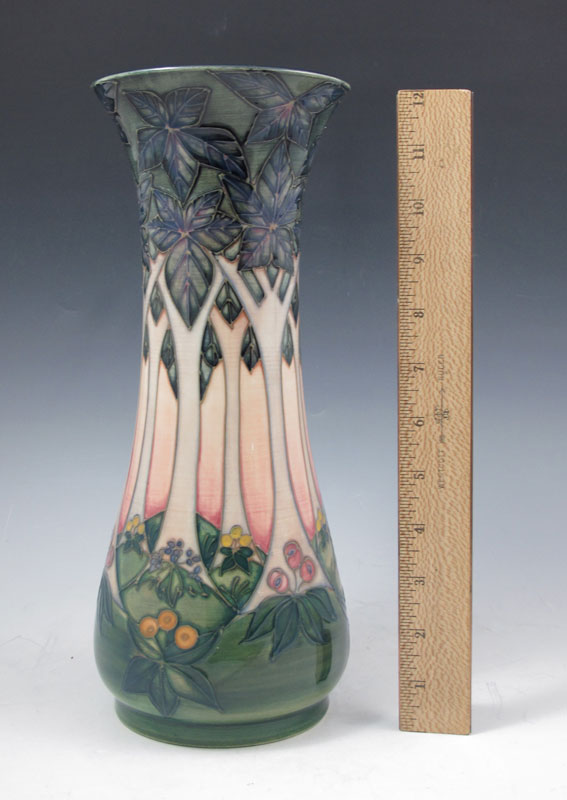 MOORCROFT CLUNY DESIGN POTTERY VASE: Designed by Sally Tuffin, painted by Beverly Wilkes, date mark 1992. 12 1/4'' tall.