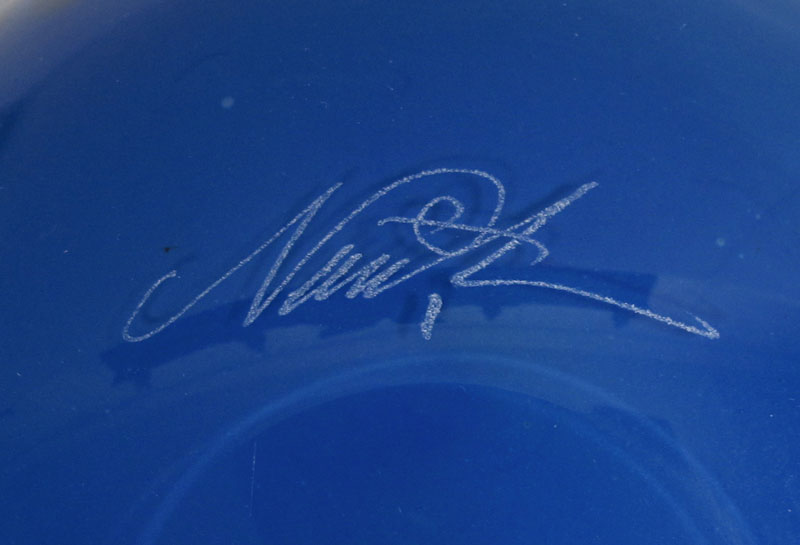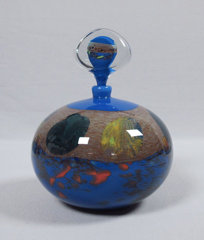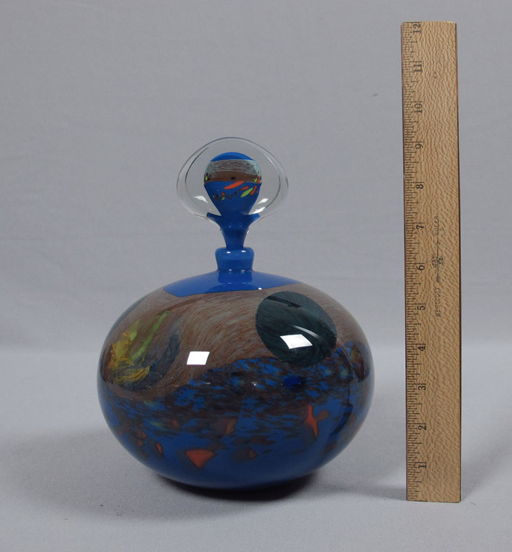 NEMTOI, Ioan (Romanian 20th C.) ART GLASS FLACON: Oversized bottle with stopper, signed, approx. 9 1/2'' x 7 1/2''.