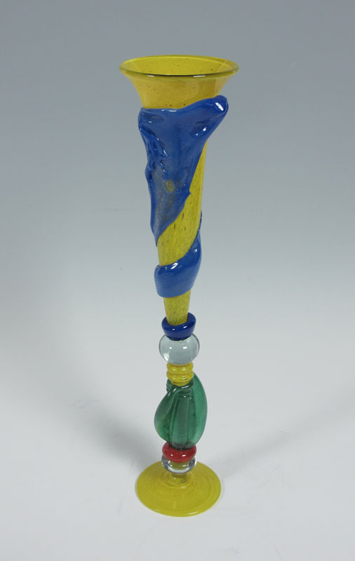 CONTEMPORARY ROMANIAN CZECH ART GLASS VASE: Applied and joined colors, 22''.