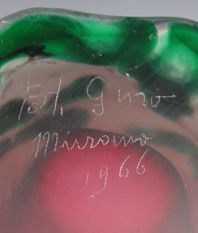 GINO FORTI SIGNED MURANO GLASS VASE: Large heavy vase, signed Forti Gino Murano 1966. 11'' h. x 7 1/4'' dia.