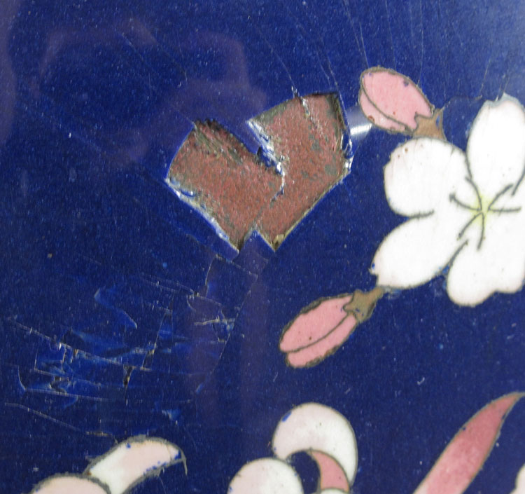 CONDITION: Please note the rim is dented and there are 2 areas of loss in the enamel.
