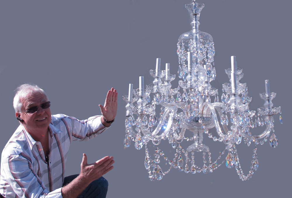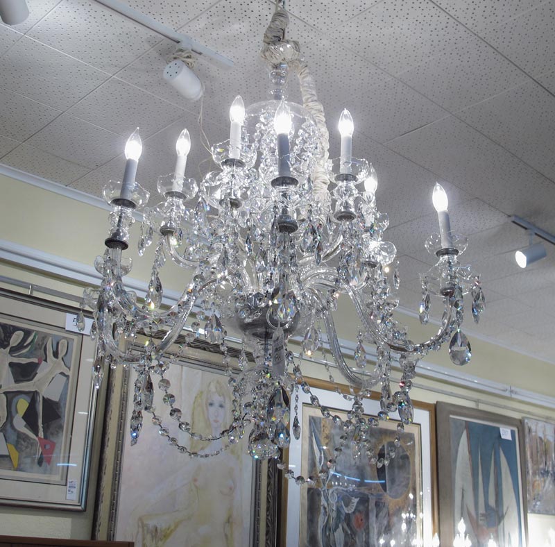 LARGE CRYSTAL 12 LIGHT CHANDELIER: Approx. 36'' h. x 35'' dia.