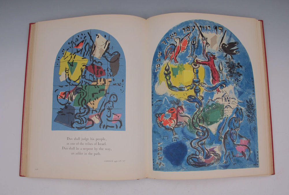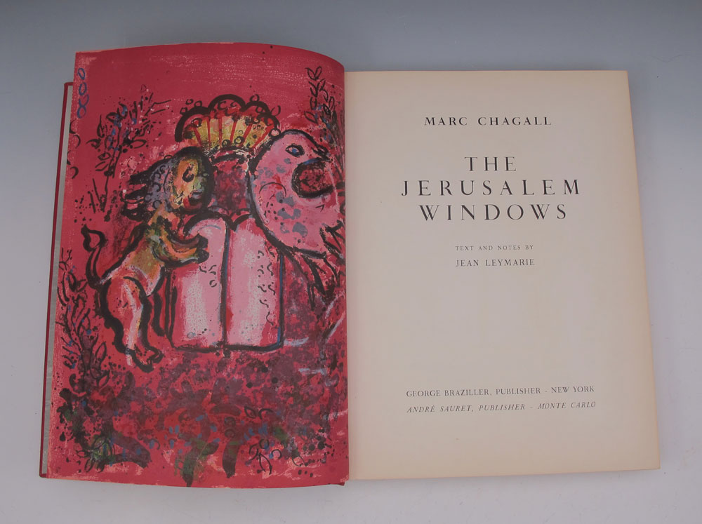 CHAGALL, Marc, (Russian, 1887-1985): ''The Jerusalem Windows'' book with 2 original lithographs by Jean Leymarie. Published 1862 George Brazillier New York; Andre Sauret, Monte Carlo. 13 1/2'' x 10 1/4'' x 1 3/8''.