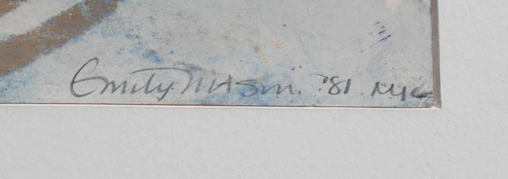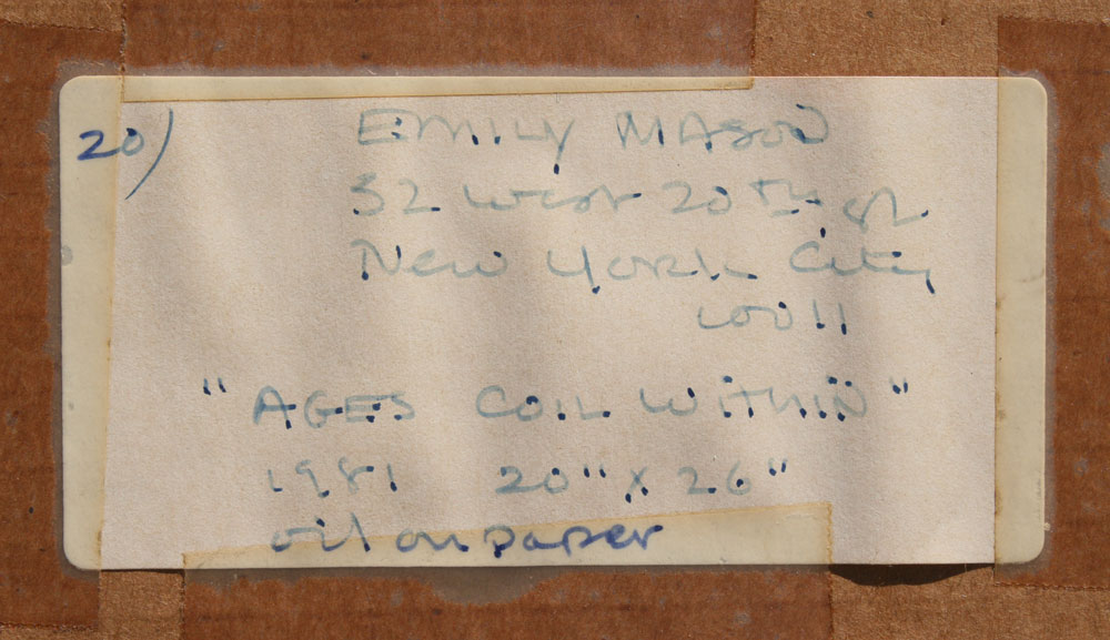 MASON, Emily, (American, 1932-): ''Ages Coil Within'', OIL/Paper, 20'' x 26'', signed and dated '81, NYC lower right, artist's label affixed verso, metal frame, 26 1/4'' x 32''.