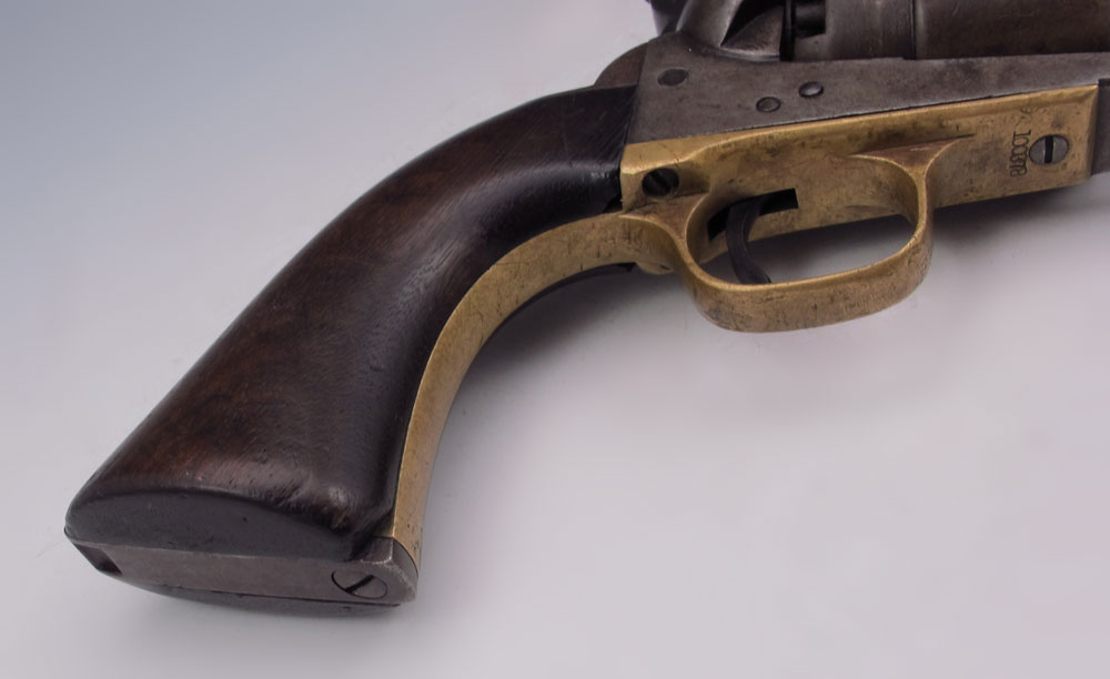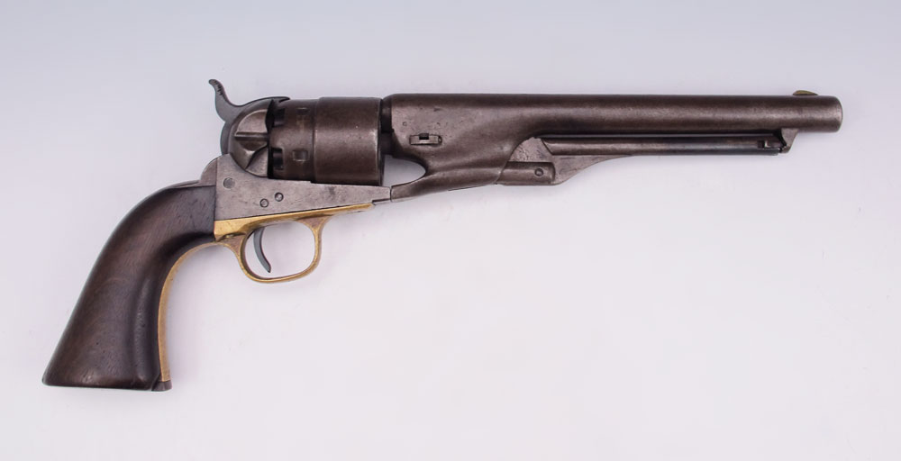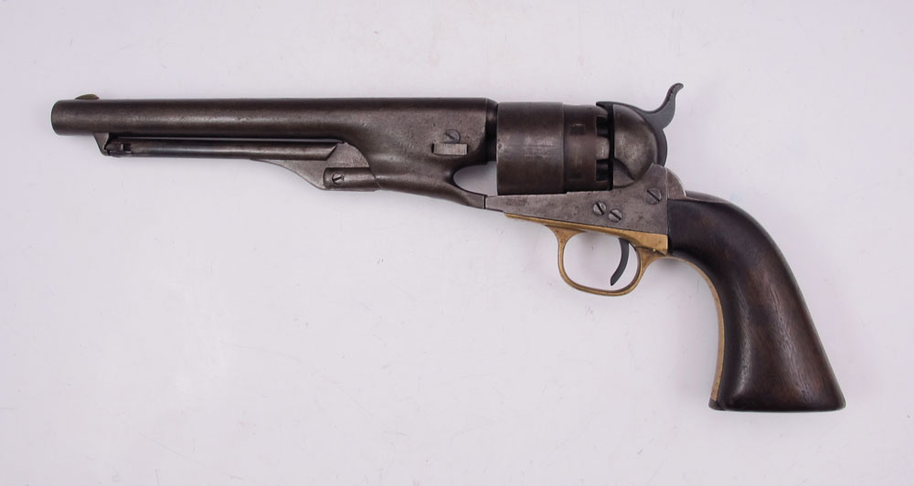 CIVIL WAR COLT MODEL 1860 ARMY PISTOL: 44 cal., matching serial numbers with exception of wedge 100328, dated to 1863. US inspector markings on metal. Marked with standard New York address mark on barrel, Colt's Patent on frame and 1855 date on cylinder. Nice action, cocks and rotates fine. 8'' barrel, 14'' overall.