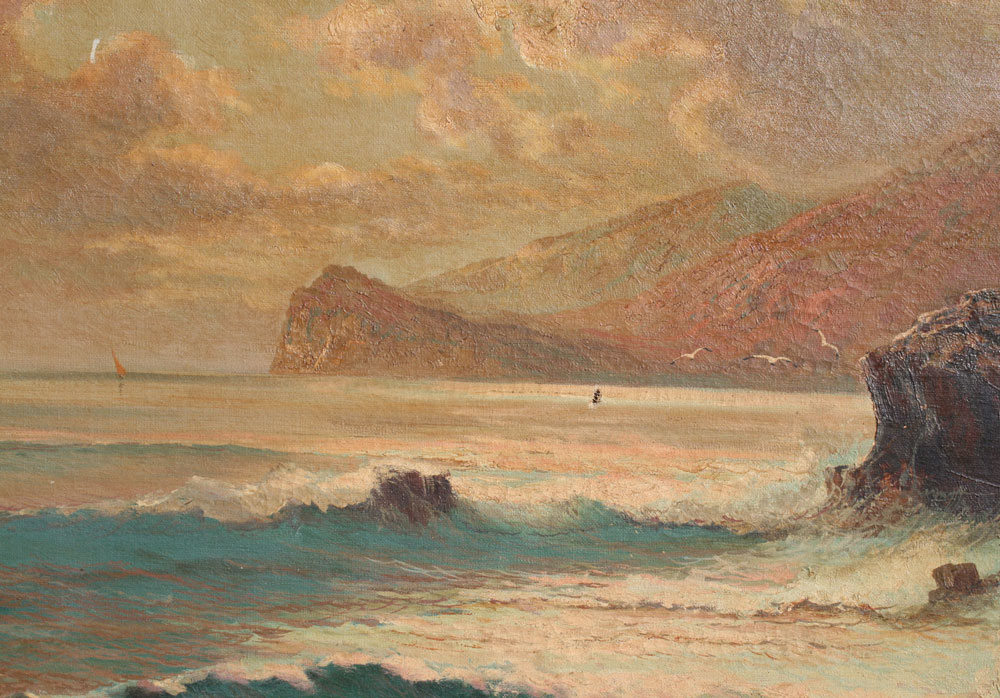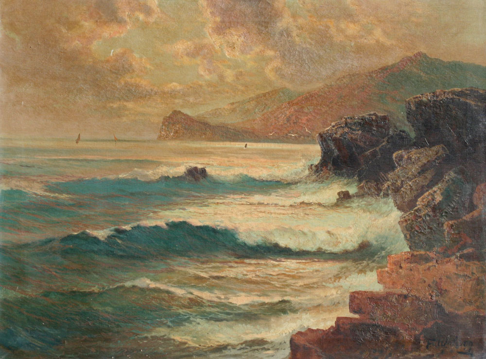 WALDEGG, Franz, (Austrian, 1888-1966): ''Off the Coast of Capri'', Seascape, OIL/Canvas, 23 1/2'' x 31 1/2'', signed, title on label verso, distressed wood frame, 32'' x 40 1/2''.