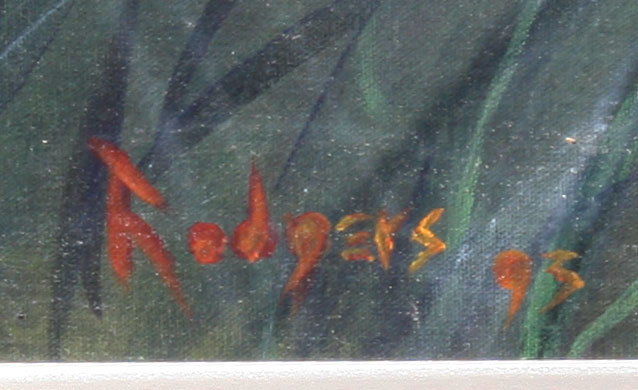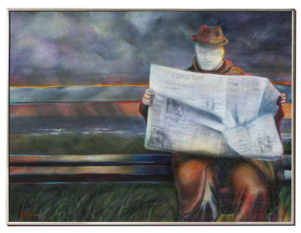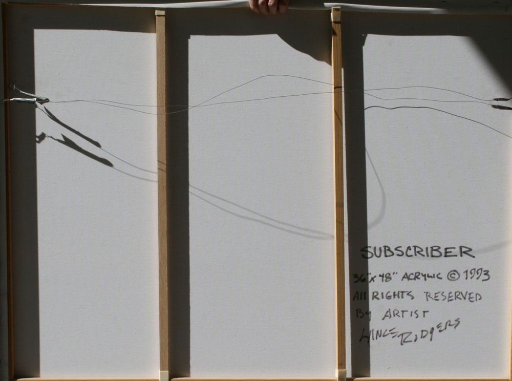 RODGERS, Lance, (American, 20th C.): ''Subscriber'', Acrylic/Canvas, 36'' x 48'', signed and dated 1993 verso, metal frame, 39'' x 51''.